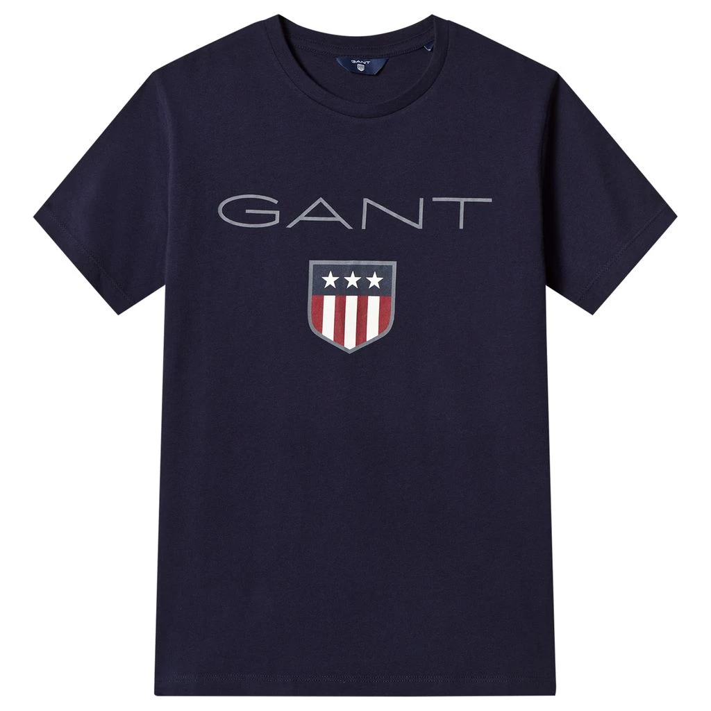 Navy Logo T-Shirt by GANT. The T-Shirt has a regular fit. It has a logo on the front.