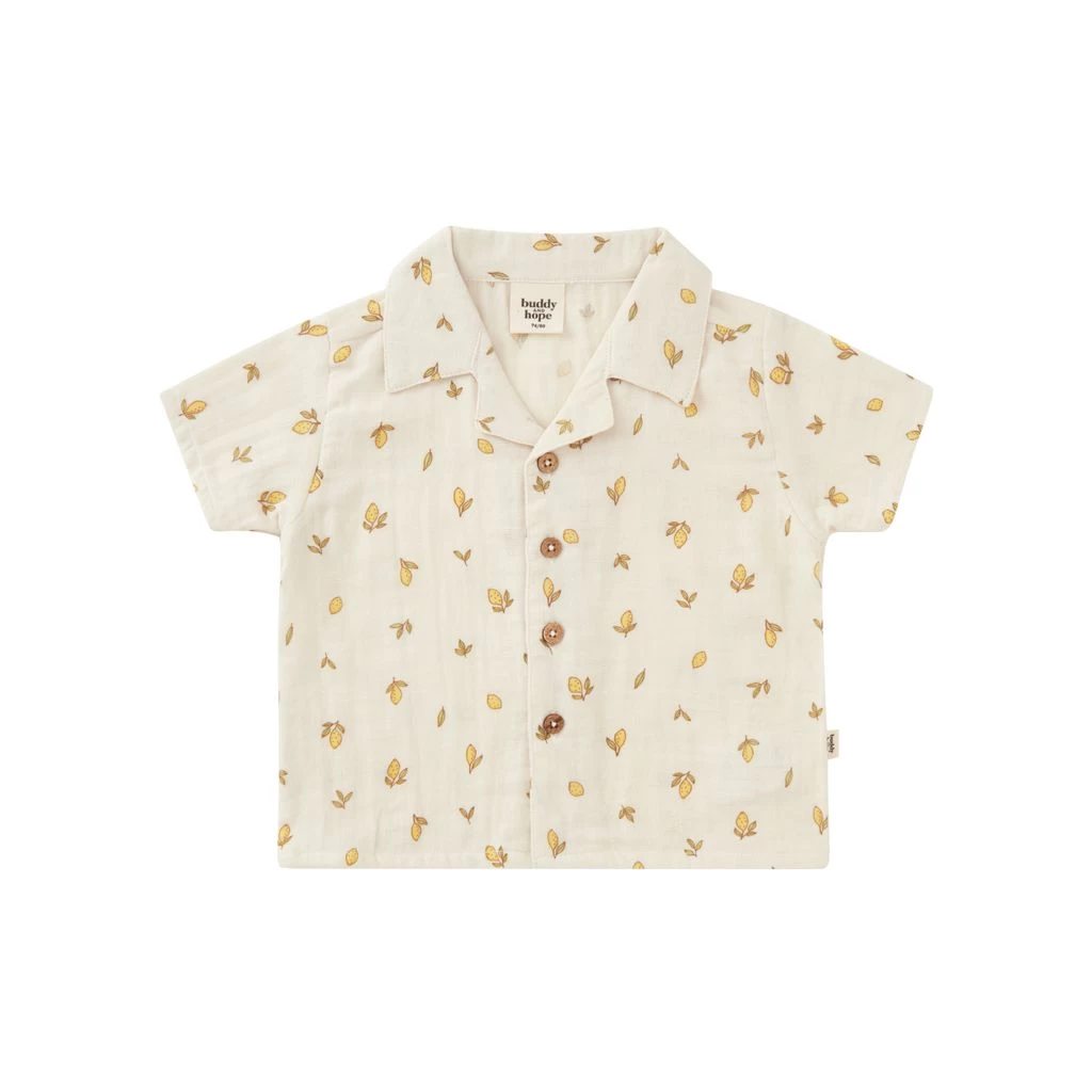 Perfect for those sunny days. Cream Arne shirt by Buddy & Hope. The shirt has an all-over print with lemons. It has a classic collar and a button closure at the front.