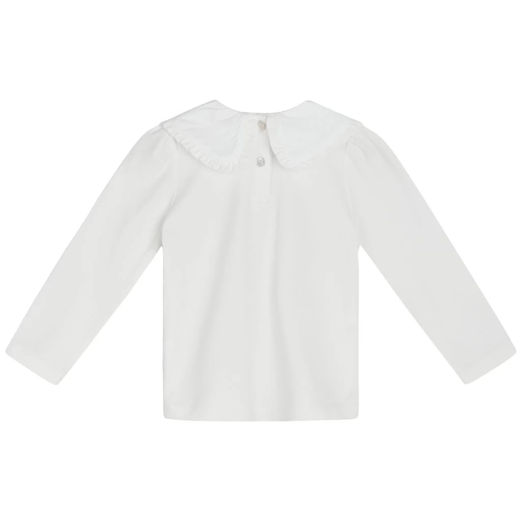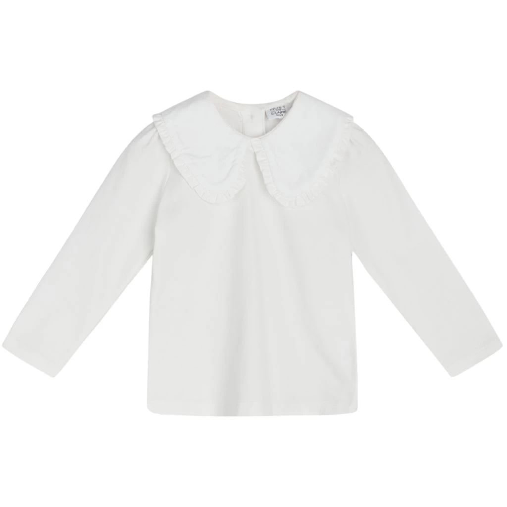 A versatile piece that is perfect for a day out with friends or for special occasions. White Abigela top by Hust&Claire. The top has a regular fit. It has a large collar and a button closure at the front.