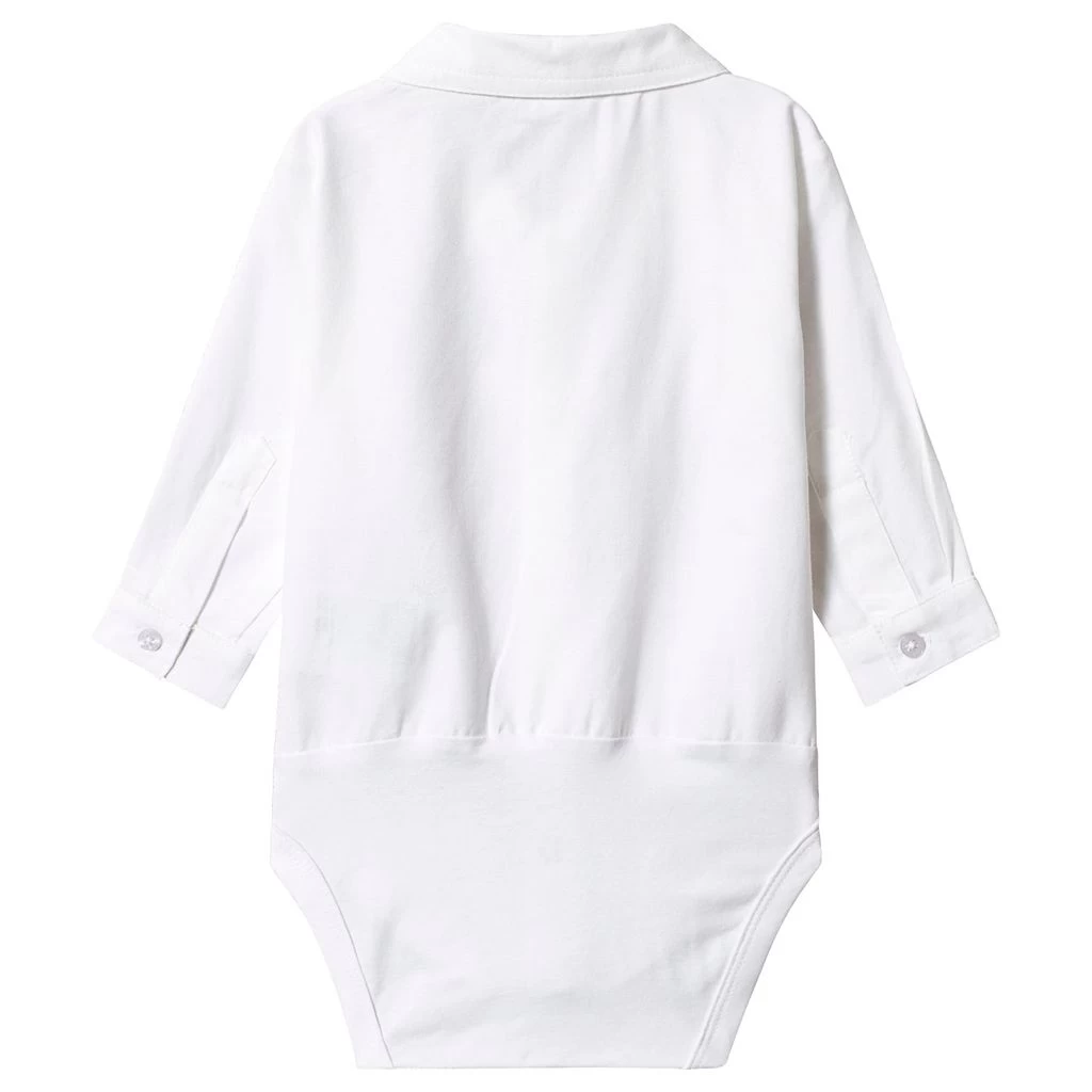 This white shirt baby body from Hust&Claire is a quick and stylish solution for special occasions. Crafted from a stretch cotton jersey, it’s both comfortable and smart with a spread collar, button down front and long sleeves, ideal for wear on its own or layered over a jumper.