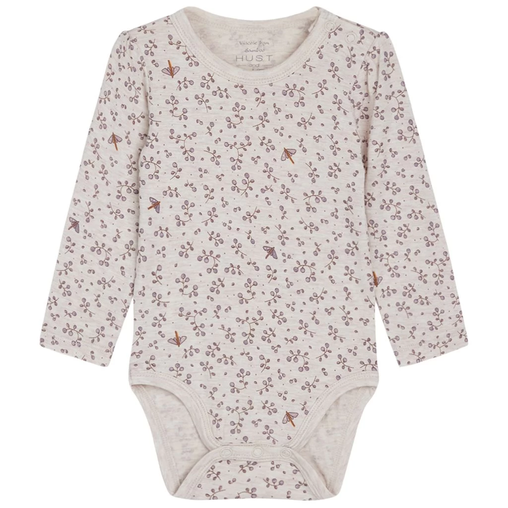 The baby body is not only stylish, but also perfect for practical use. Beige Bonita baby body by Hust&Claire. The baby body has a cute all-over print. It has snap buttons at the shoulder and between the legs.