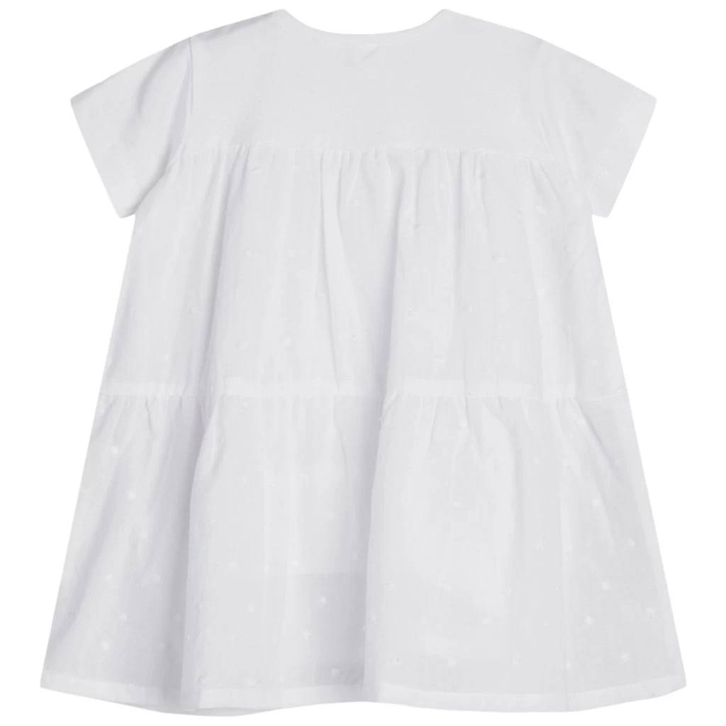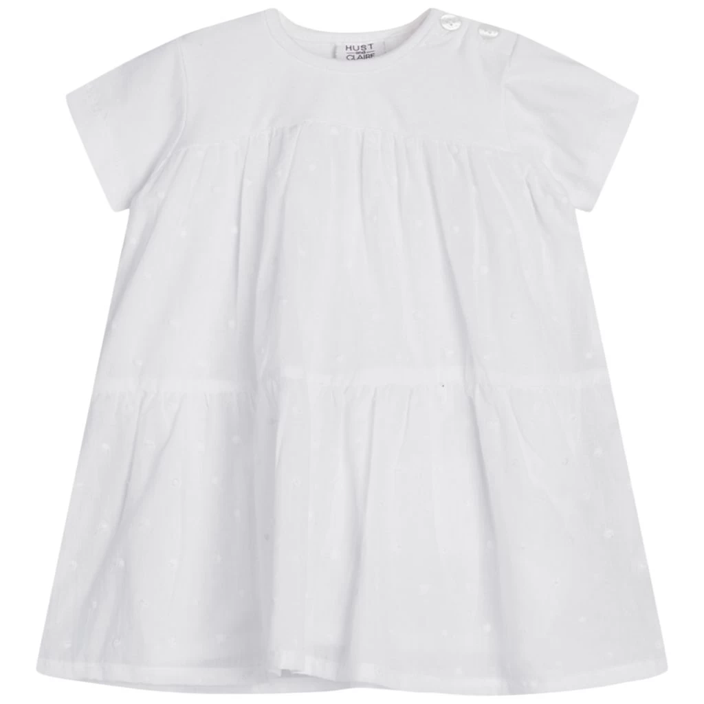 A dress for every occasion. White Kristiane dress by Hust&Claire. The dress has an A-line silhouette. It has a button closure at the shoulder.