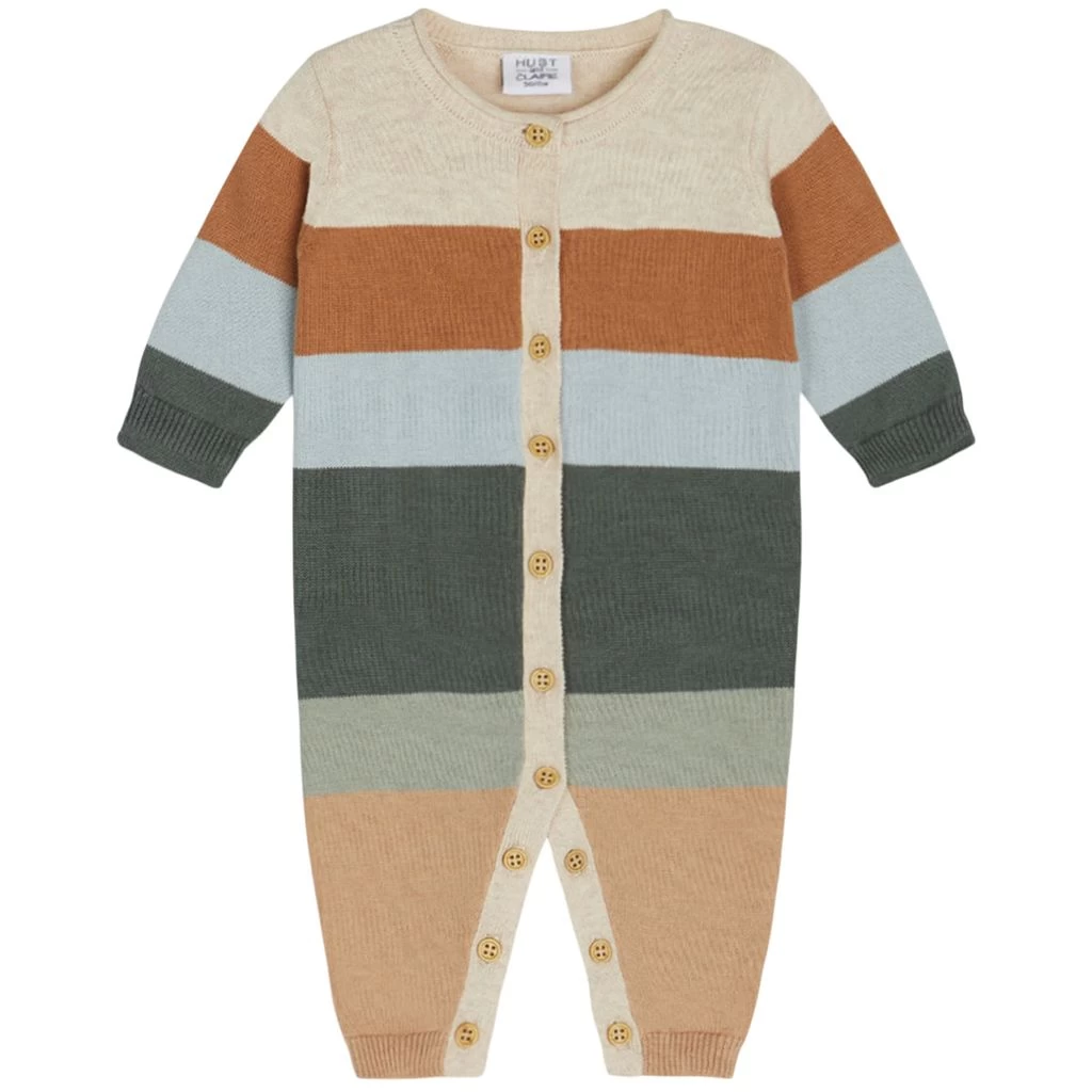 Your little one can play all day in comfort. Multicolor Malle onesie by Hust&Claire. The onesie has a knitted design. It has a button closure at the front and between the legs and rib-knit cuffs.