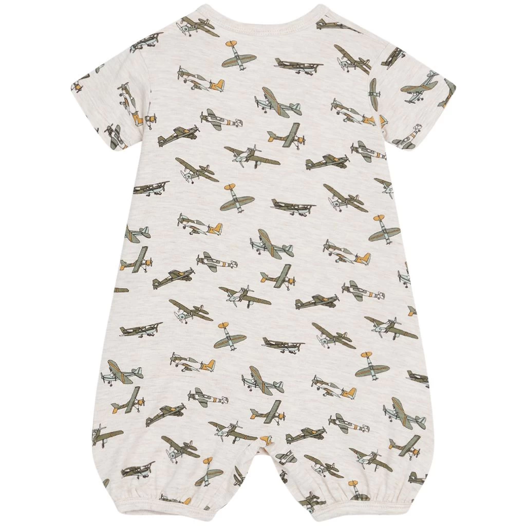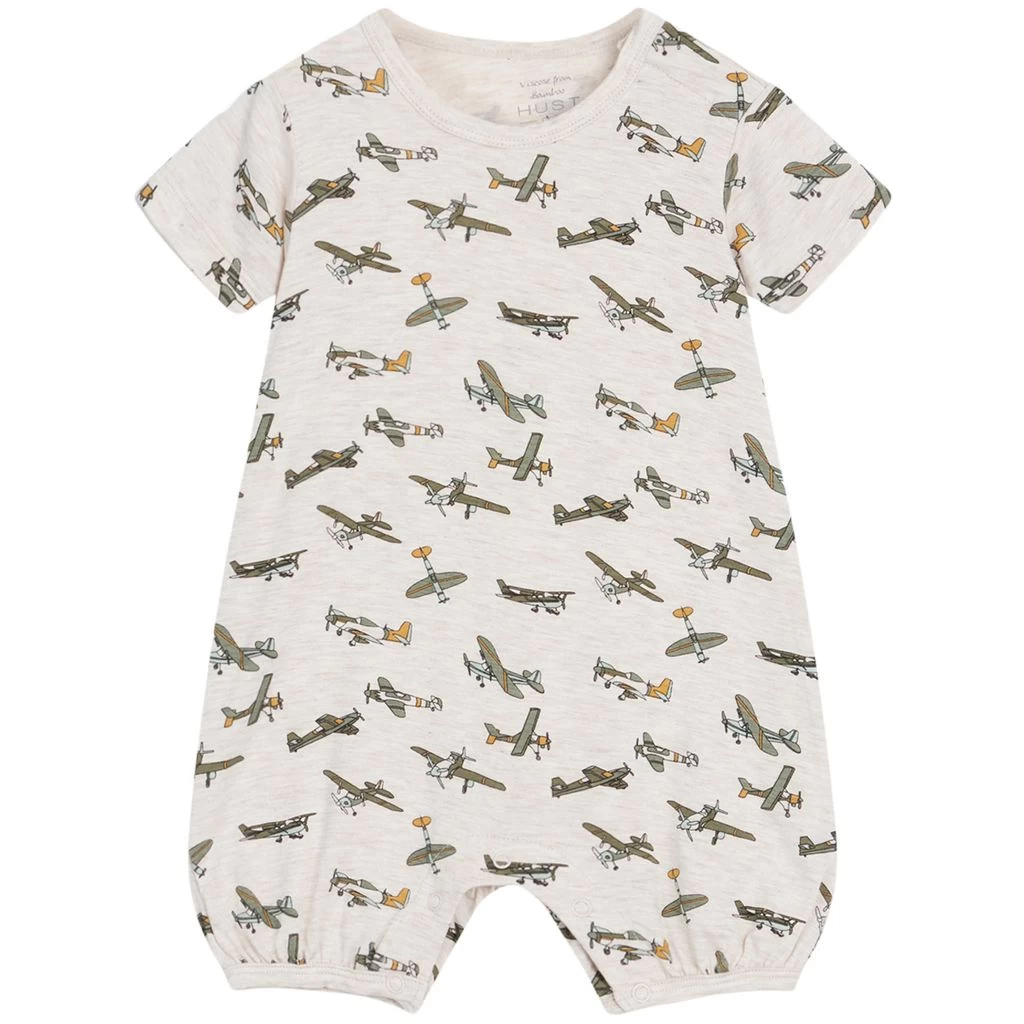 Let your baby explore and play in comfort. Beige Milu romper by Hust&Claire. The romper has a playful all-over print. It has snap buttons at the shoulder and between the legs.