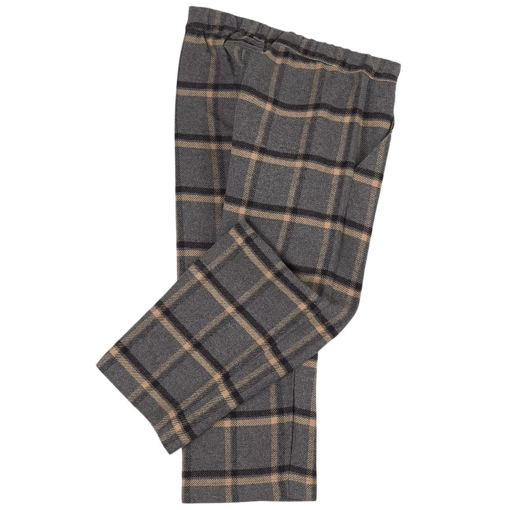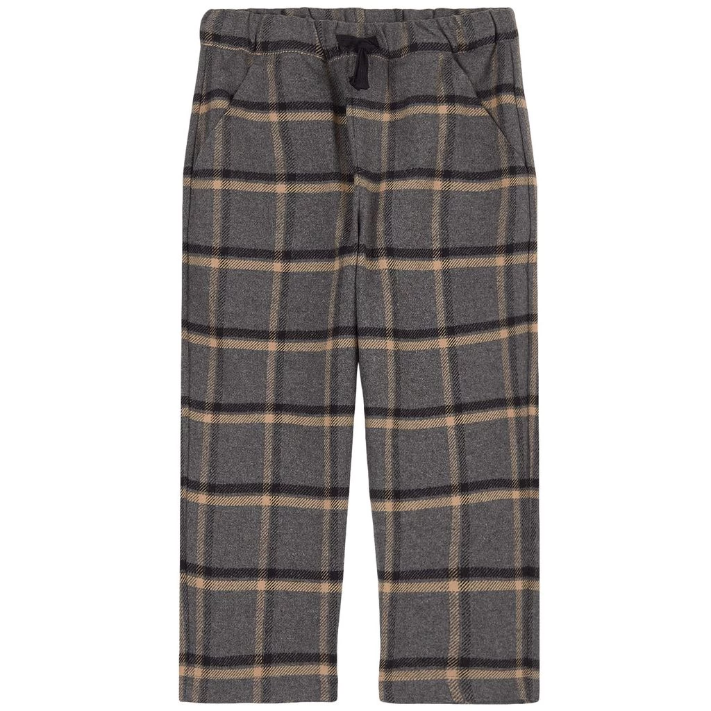 A cute and stylish look. Grey Ian trousers by My Little Cozmo. The trousers have a soft flannel material. They have an elasticated drawstring waist and two front pockets.