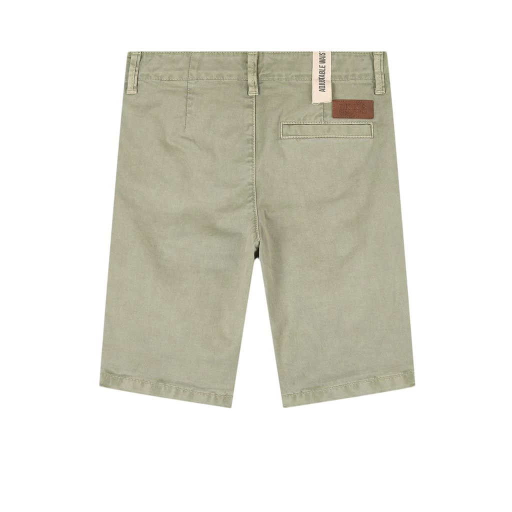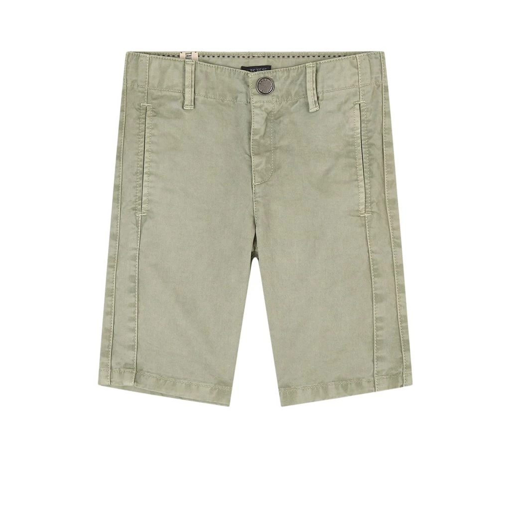 For those days that bring you closer to summer. Green bermuda shorts by IKKS. The shorts have belt loops. They have an adjustable button-elastic waist, a zip and hook closure, two front pockets and one piped back pocket.