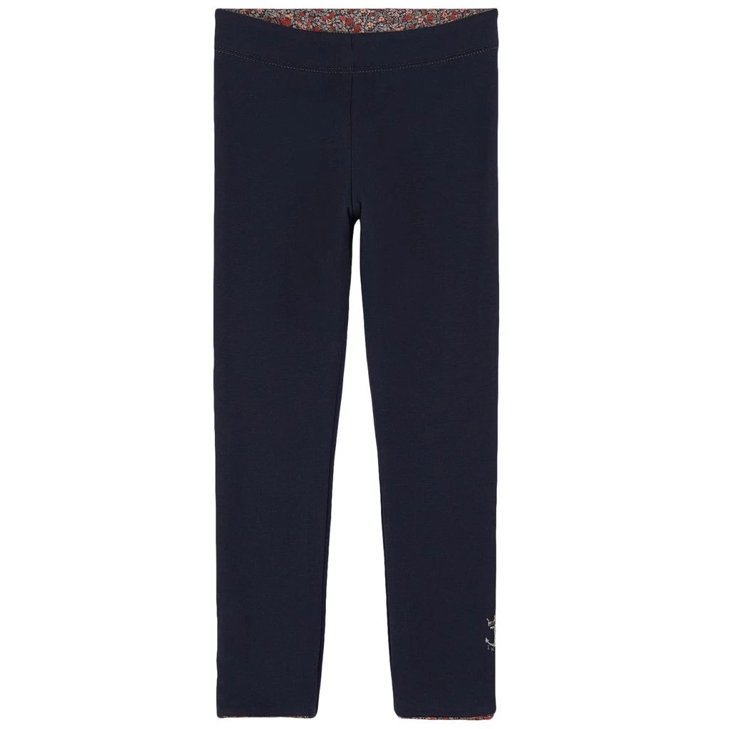 Stay in style with these trendy leggings. Navy leggings by IKKS. The leggings have an elasticated waist. They have a logo print on the bottom front and a reversible design with a flower print all over.