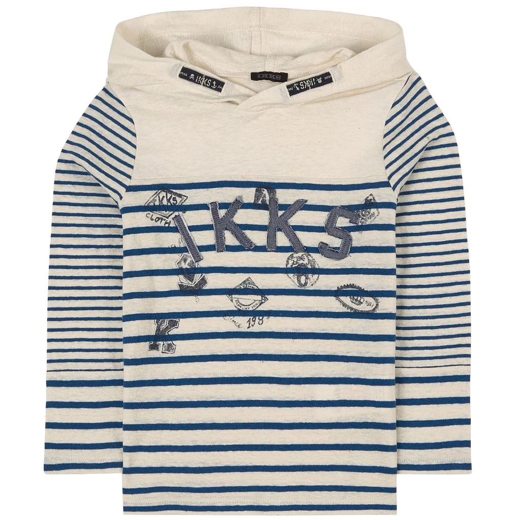 Off white Striped hoodie by IKKS. The hoodie has a regular fit. It has a logo detail at the front.