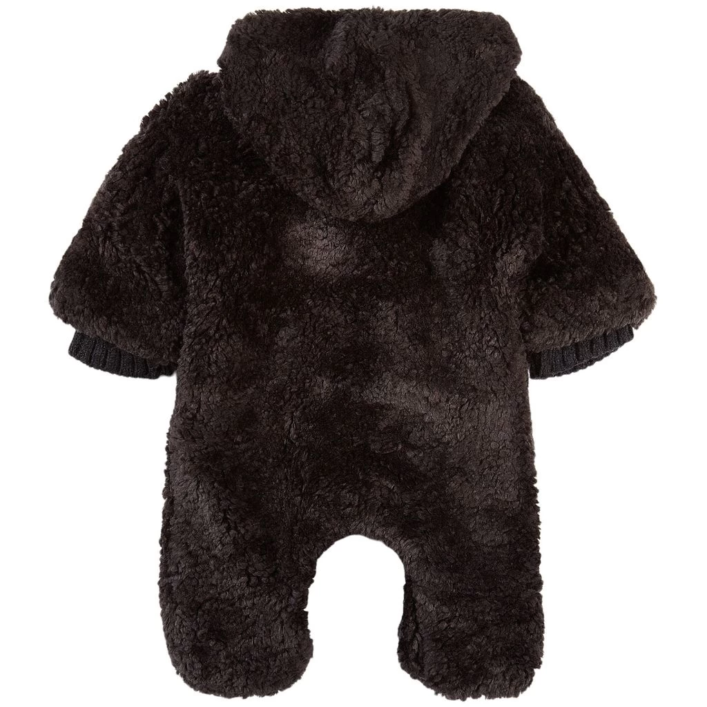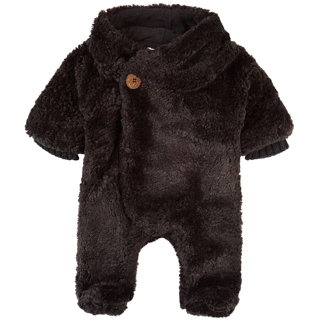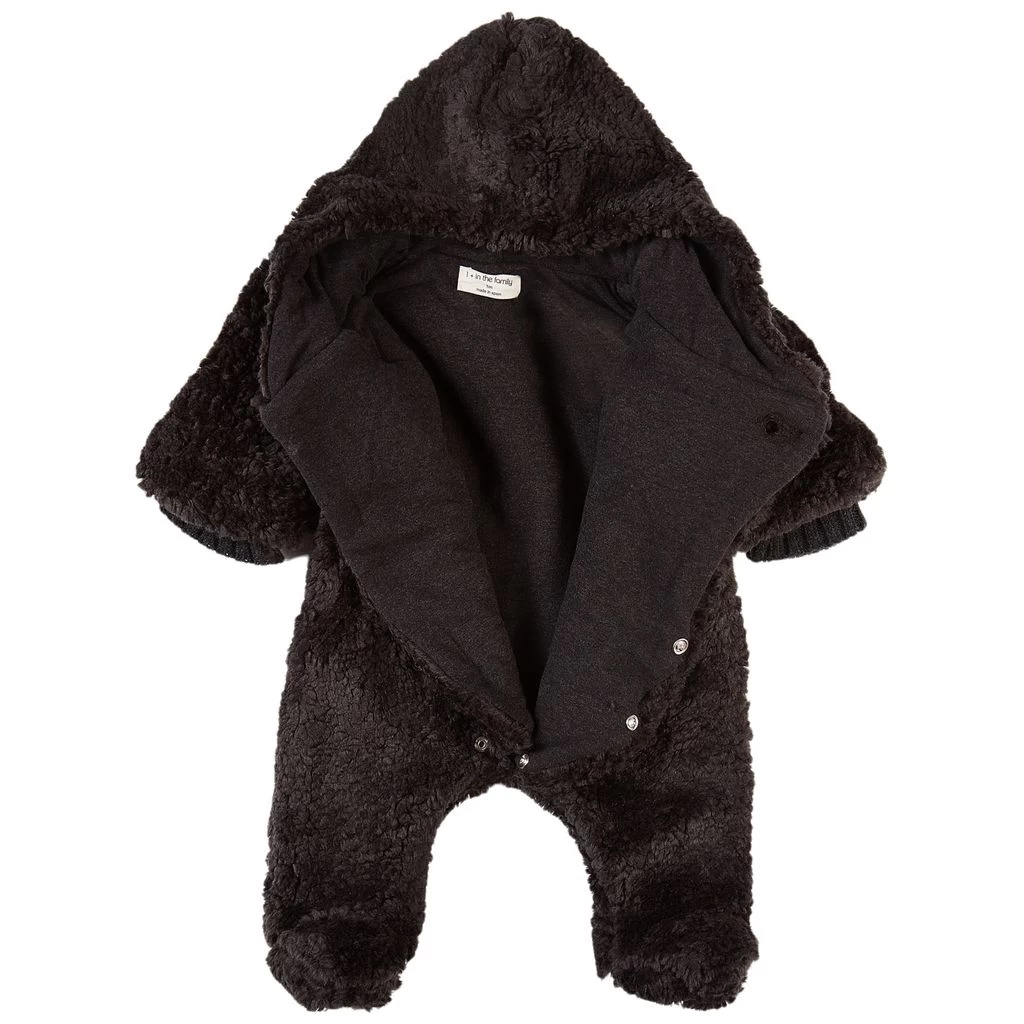 Indira onesie by 1+ In The Family. The onesie is made in Spain and has a teddy material. It has a fixed hood, a ribbed cuff and a button closure at the front.