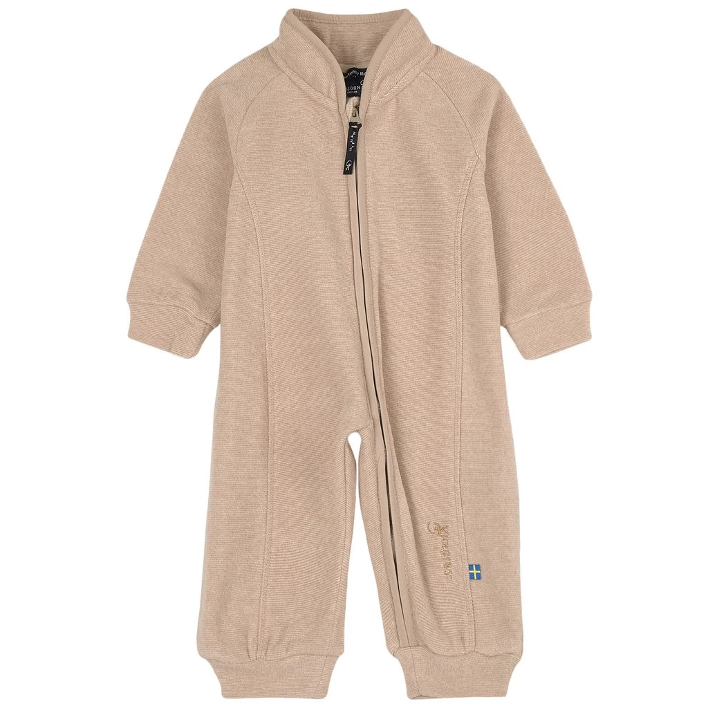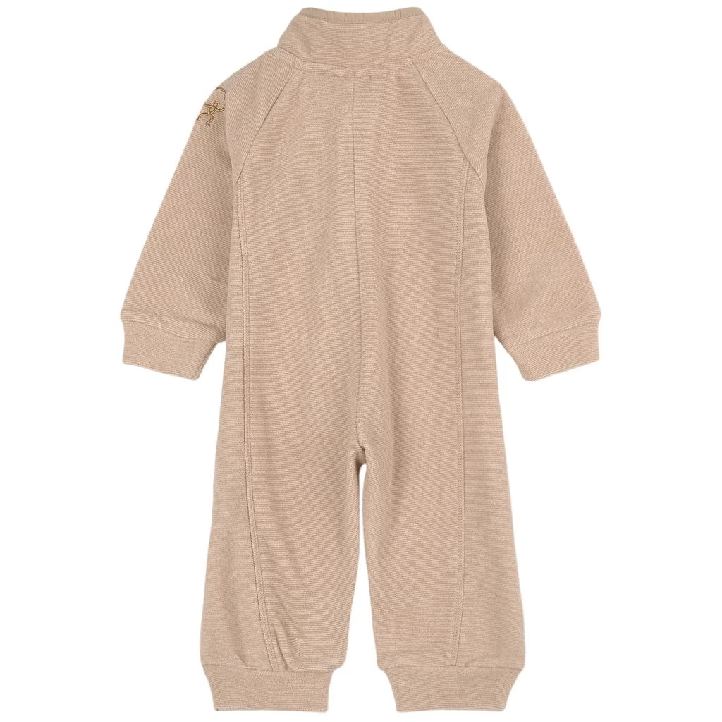 Beige Lynx fleece onesie by Isbjörn Of Sweden. The fleece onesie has a zip closure at the front. It has banded cuffs.