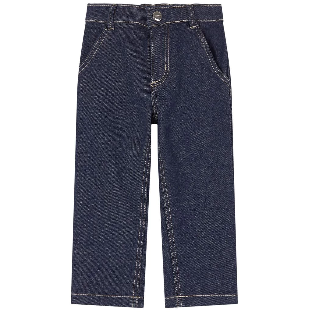 Blue Cargo jeans by Jacadi. The jeans have an elasticated waist. They have a zip fly with button, two front pockets and one back pocket.