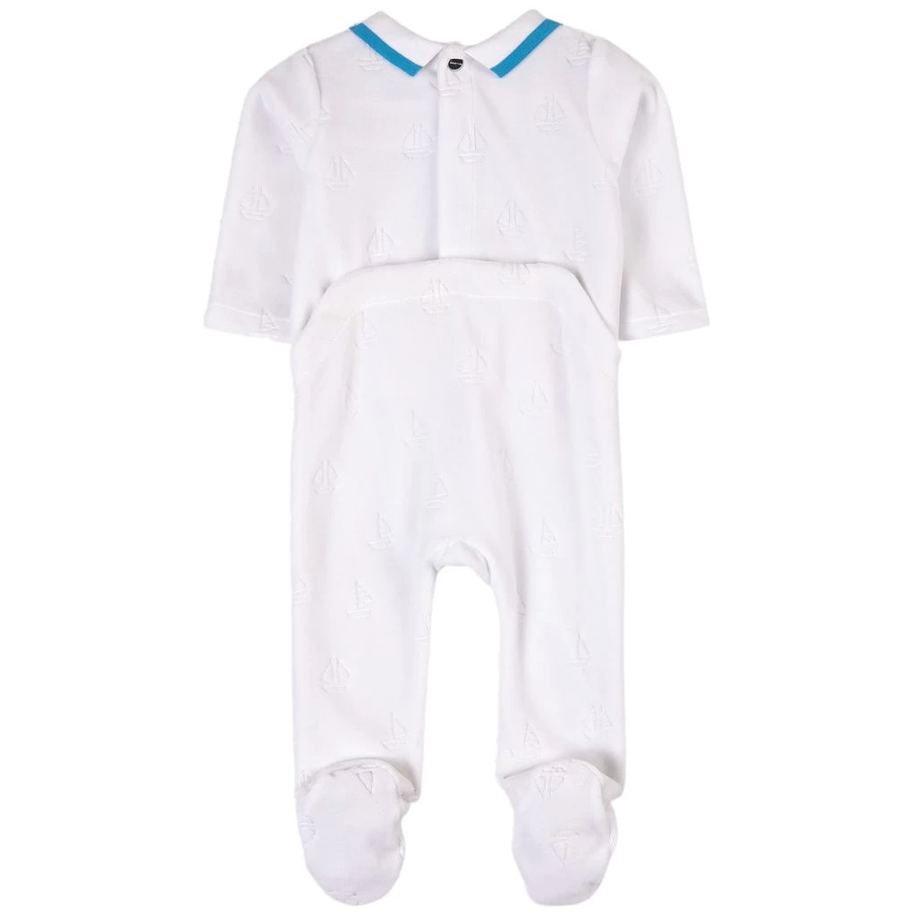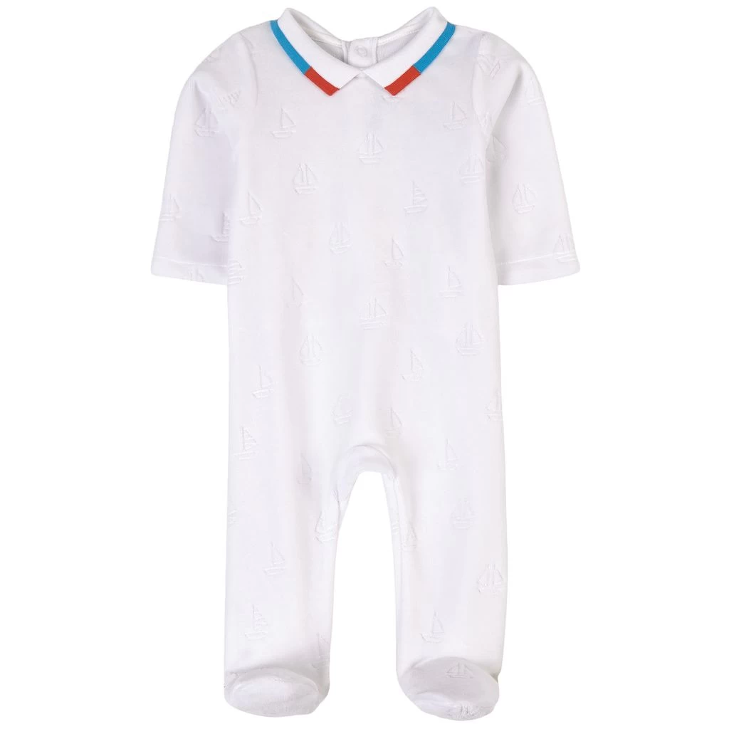 White Contrast baby grow by Jacadi. The baby grow has snap buttons at the back.