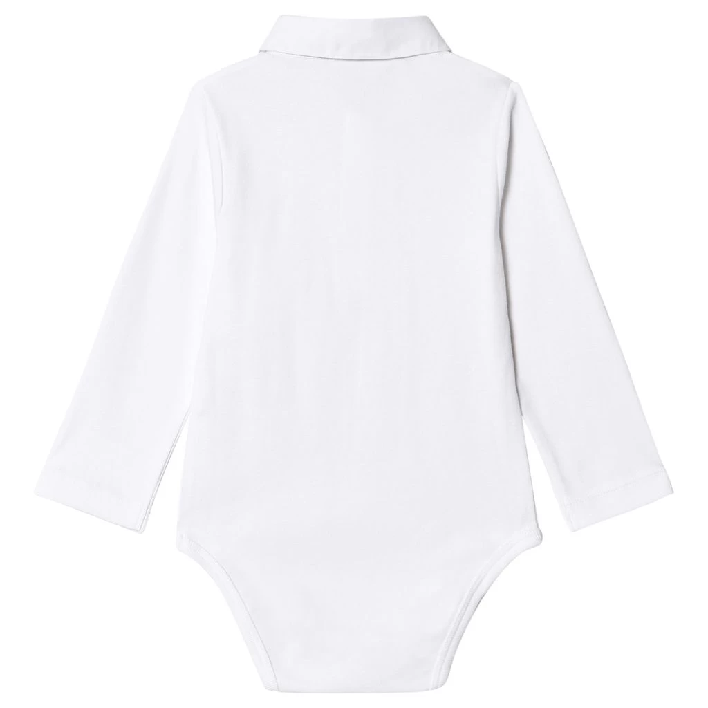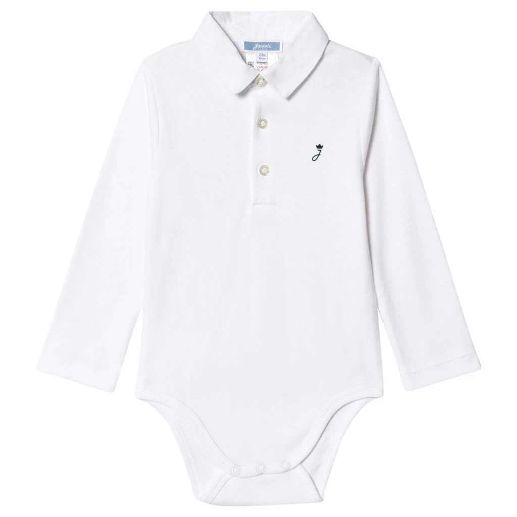White Oxford Collar baby body by Jacadi. The baby body has a button closure at the front. It has a snap button closure between the legs.