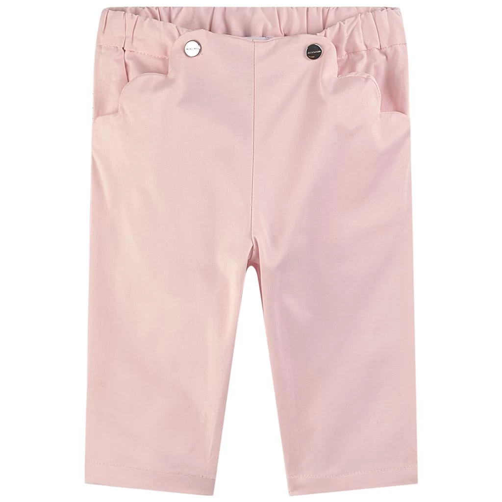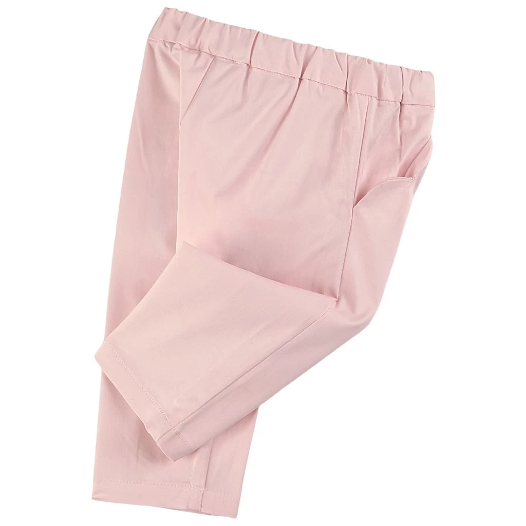 Powder pink trousers by Jacadi. The trousers have an elasticated waist. They have two front pockets.