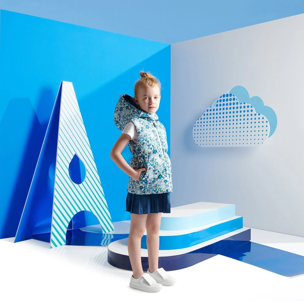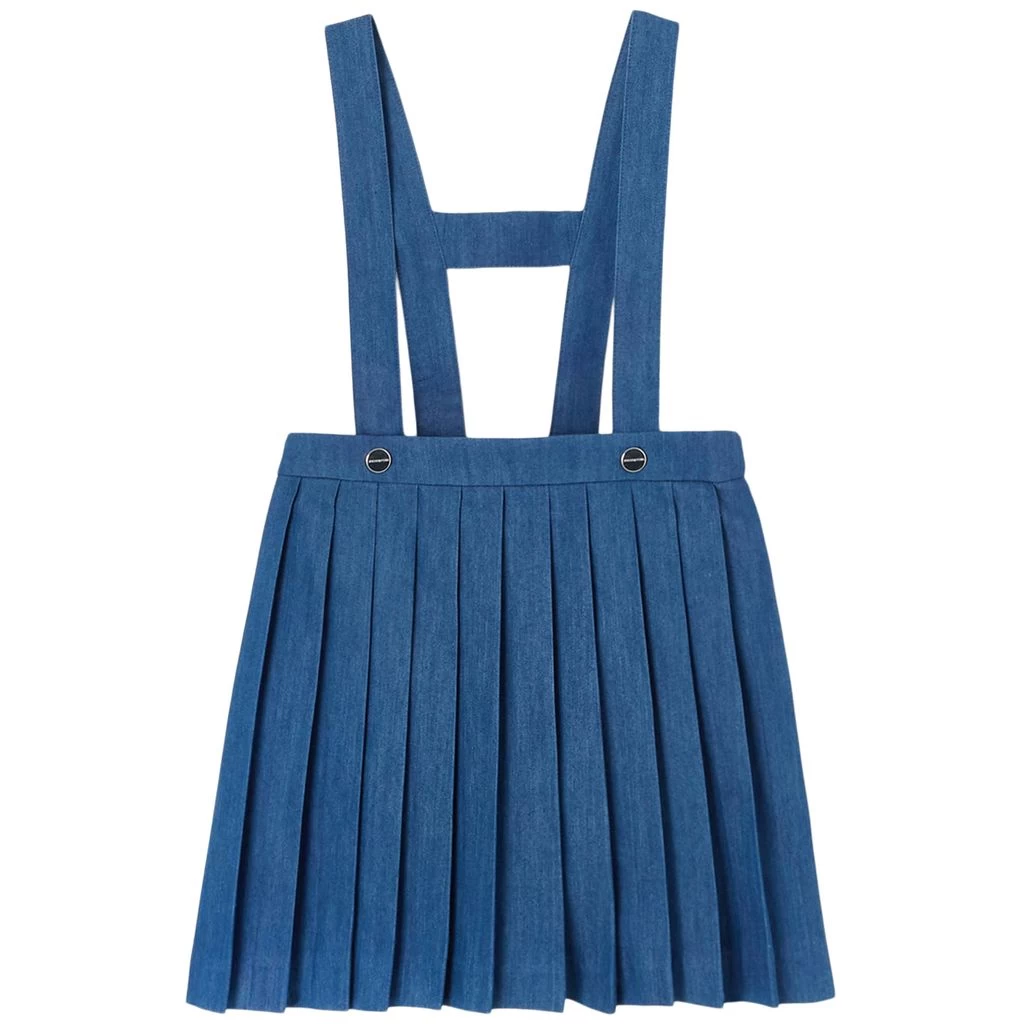 Blue skirt by Jacadi. The skirt has a pleated design. It has detachable shoulder straps and a concealed zip closure at the side.