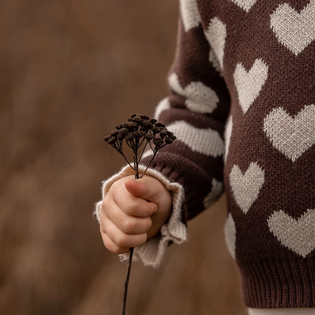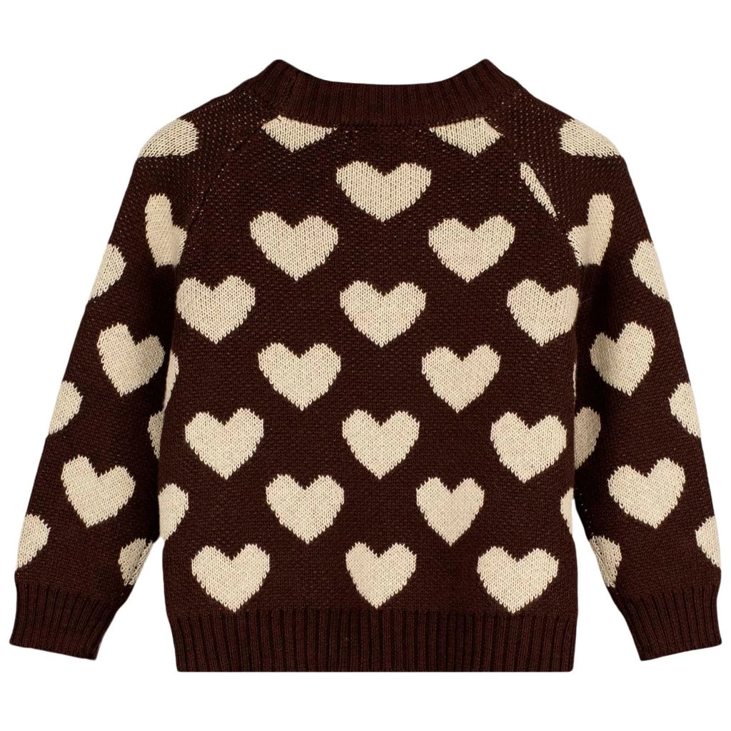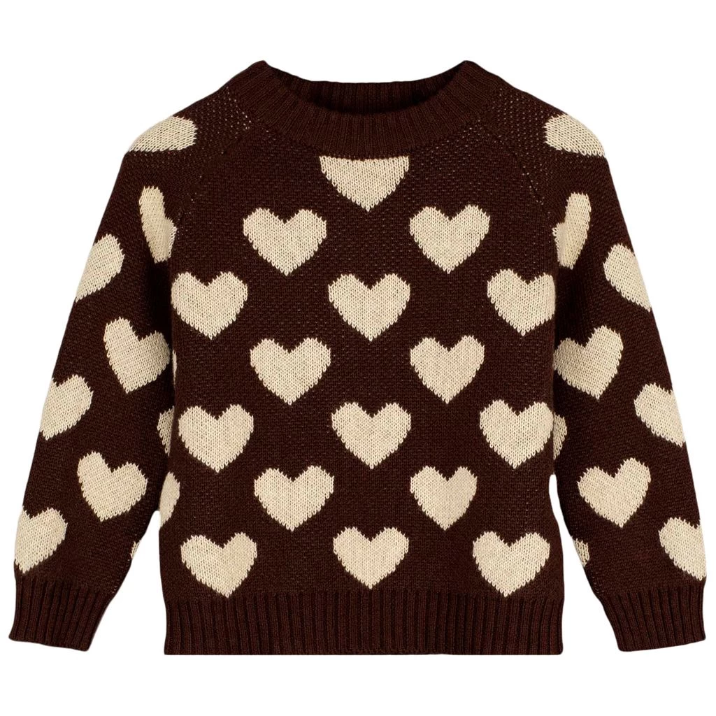 Fall in love with this sweater and your new style!. Brown Janie knit jumper by Fliink. The jumper has a knitted design. It has intarsia hearts and rib-knit cuffs.