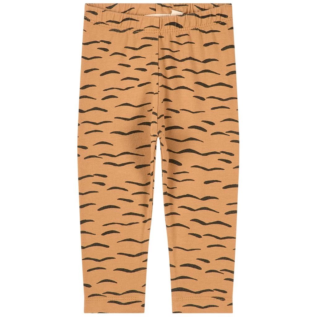 Beige Jersey trousers by Mini Siling. The trousers are made in Portugal and have an all-over print. They have an elasticated waist.