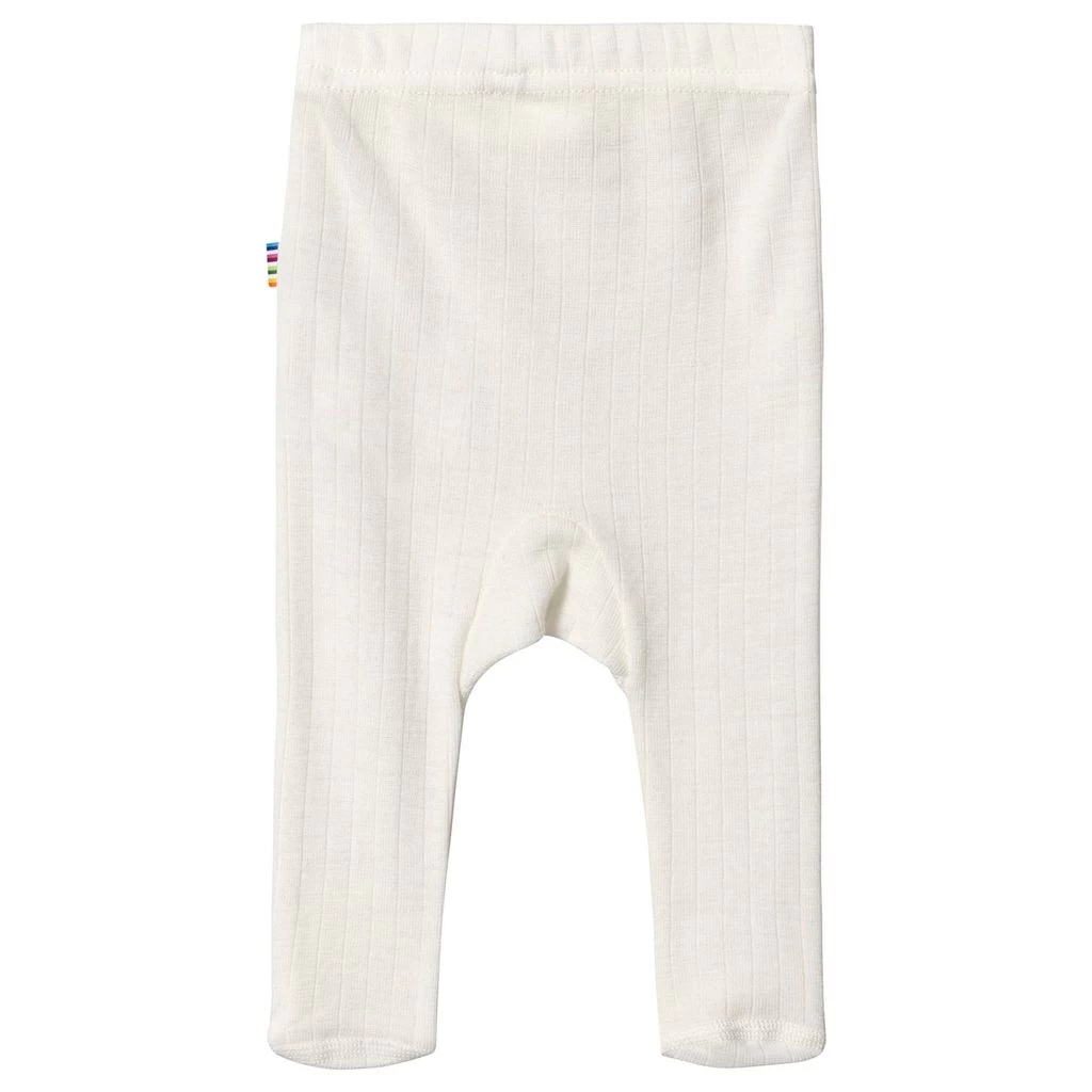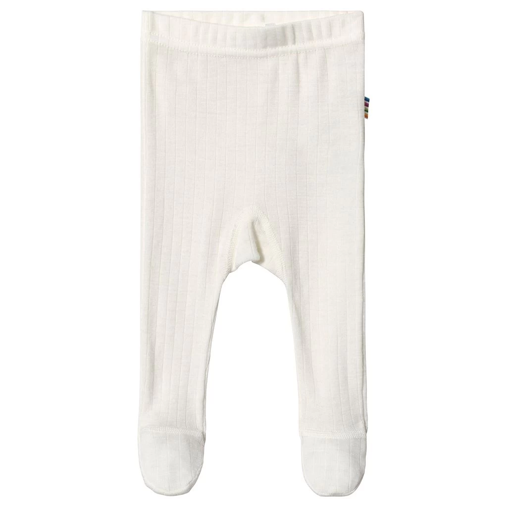 White leggings by Joha. The leggings have a knitted design. They have feet, a soft material in merino wool and an elasticated waist.