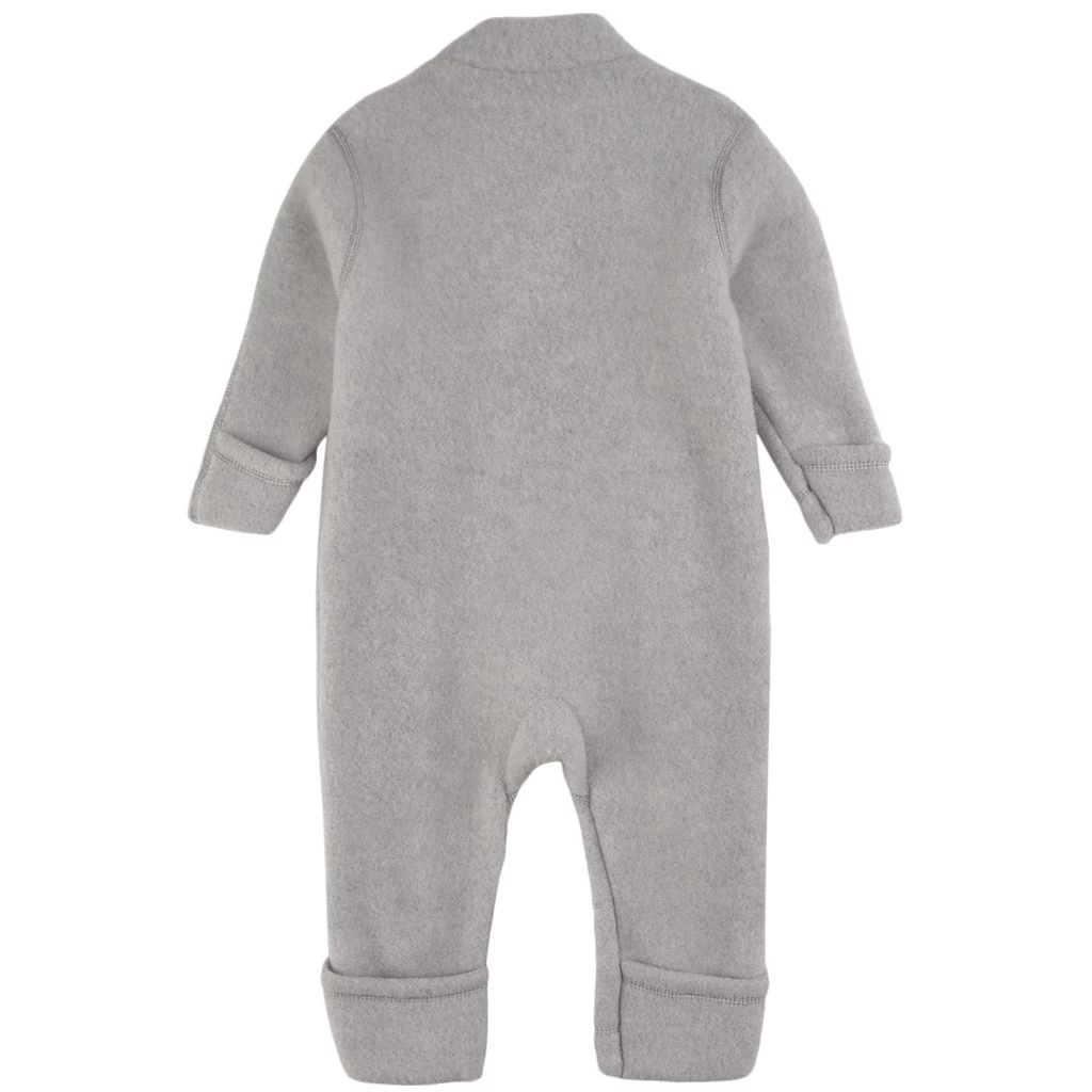 Wool brings you warmth and comfort. Grey onesie by Joha. The onesie has a double zip closure at the front. It has fold-over cuffs.