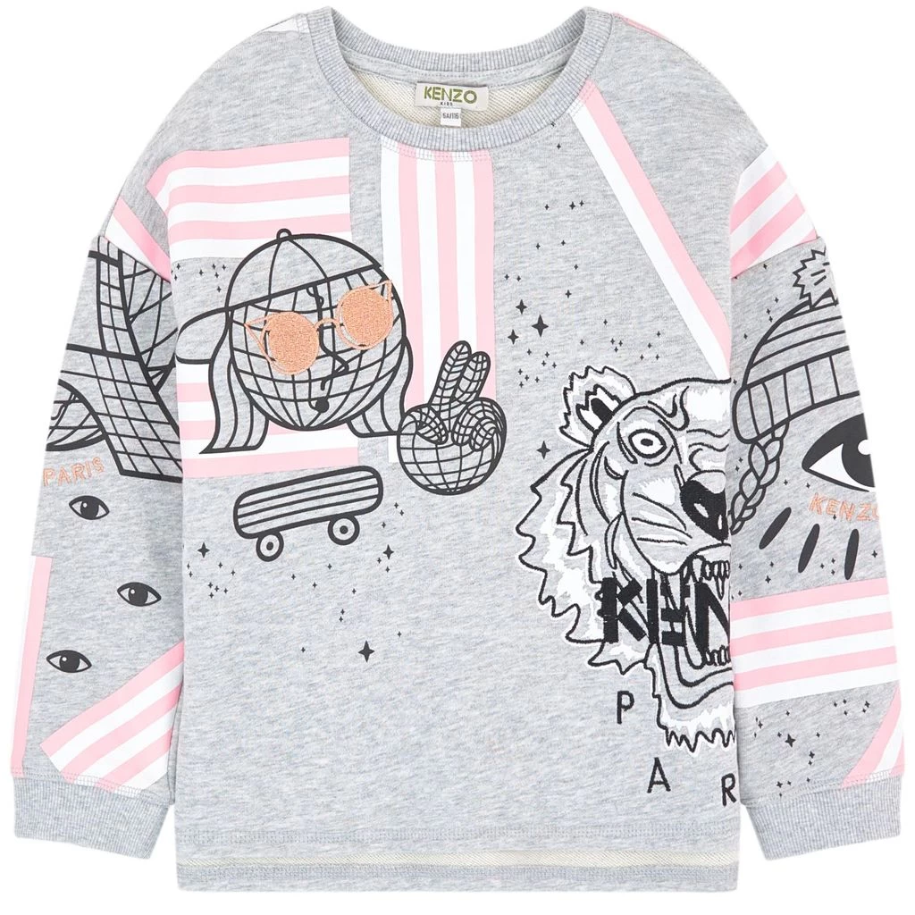Kenzo injects charming whimsy into new season style with this tiger print grey sweatshirt. Featuring pink and white stripes, a ribbed round neck and long sleeves with ribbed cuffs, this fun layering piece will look great paired with skinny jeans for a dash of contemporary cool.Â