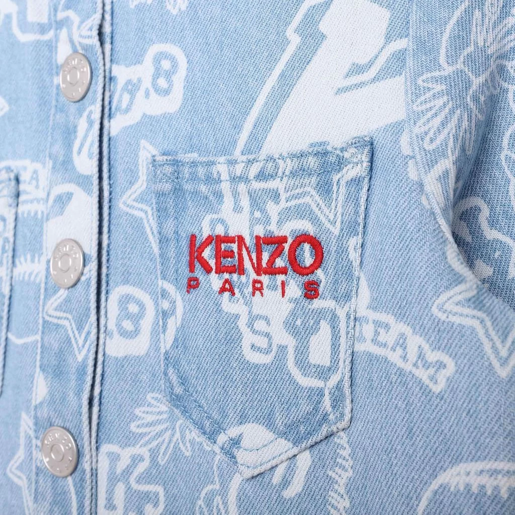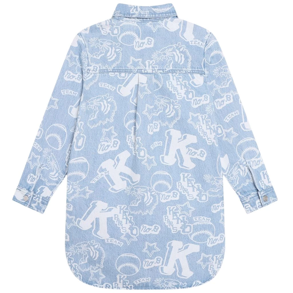 A dress for every occasion. Blue dress by Kenzo. The dress has a straight fit. It has a logo pattern, a shirt collar, a button closure at the front and two chest pockets.