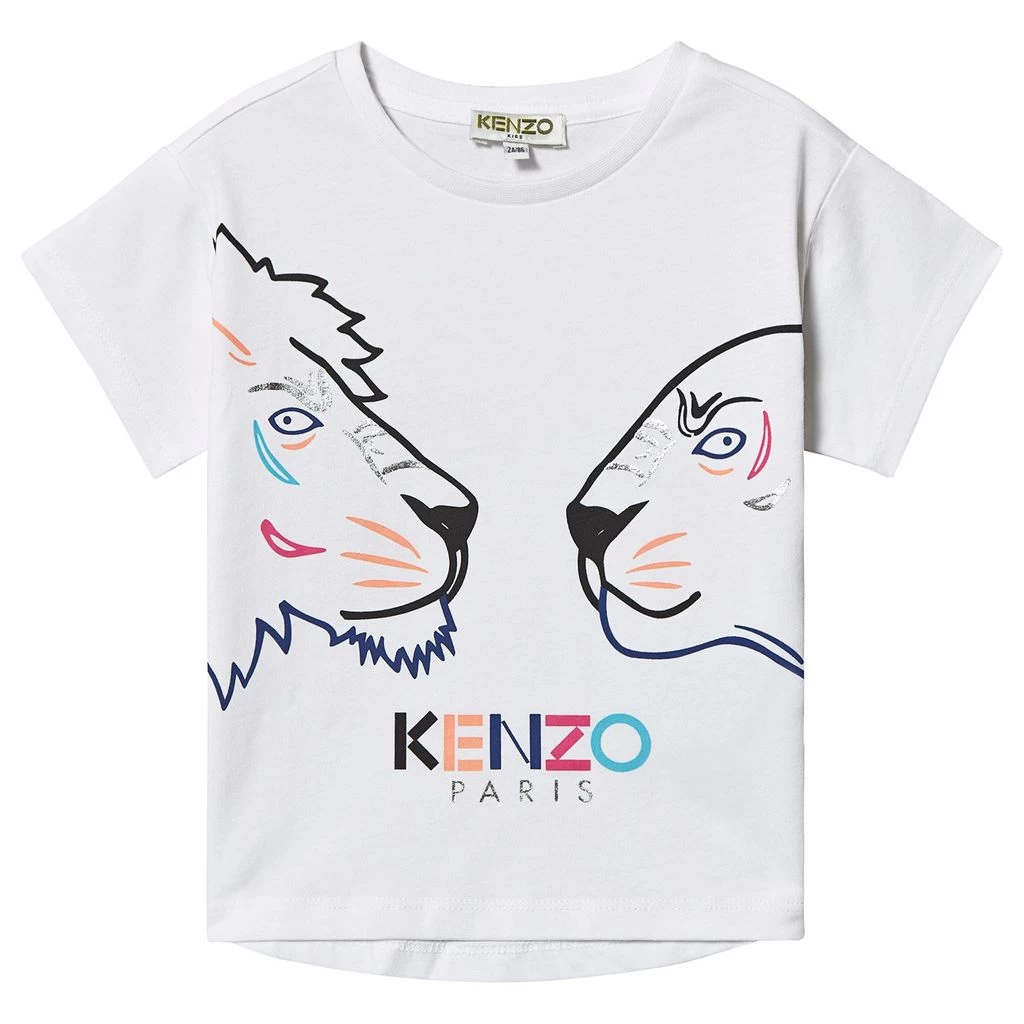 This cool white tee from Kenzo Kids will lend a touch of character to their weekend looks. Crafted in soft cotton, the short-sleeved style has a scooping neckline and shaped cut and has been finished with the brand’s iconic Kenzo Paris tiger design to the front as well as a bold lion. Style with cropped jeans or shorts, and a pair of espadrilles.