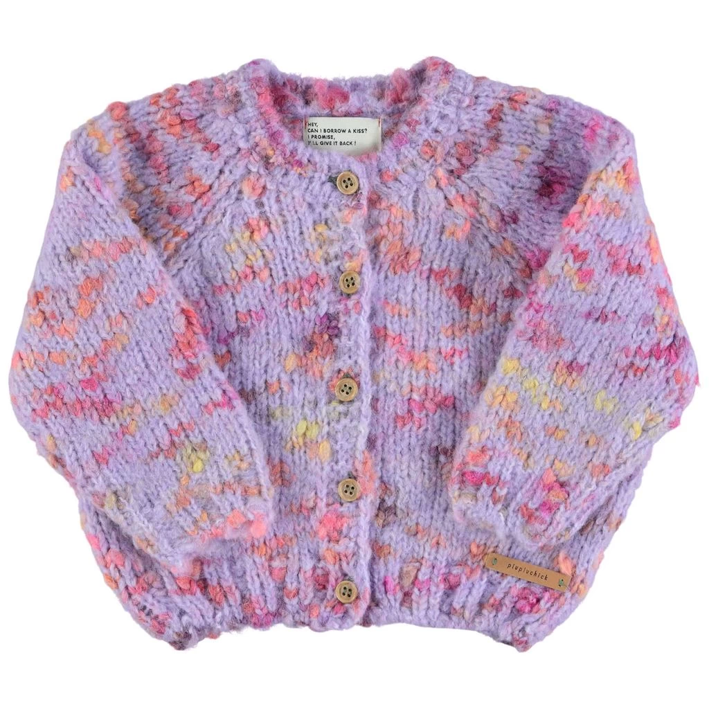 Enjoy the stylish design and soft knitted feel. Purple knitted cardigan by Piupiuchick. The knitted cardigan is made in Portugal and has a button closure at the front.