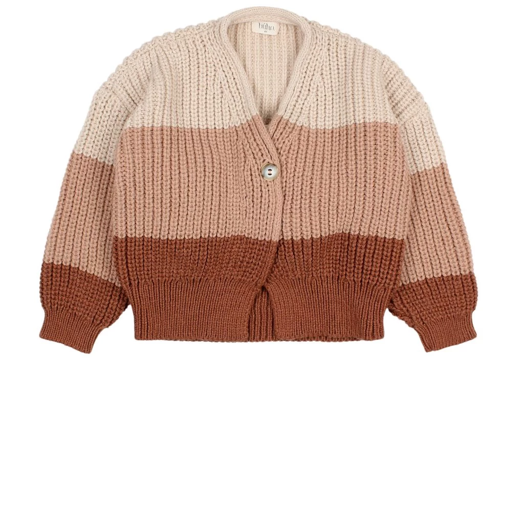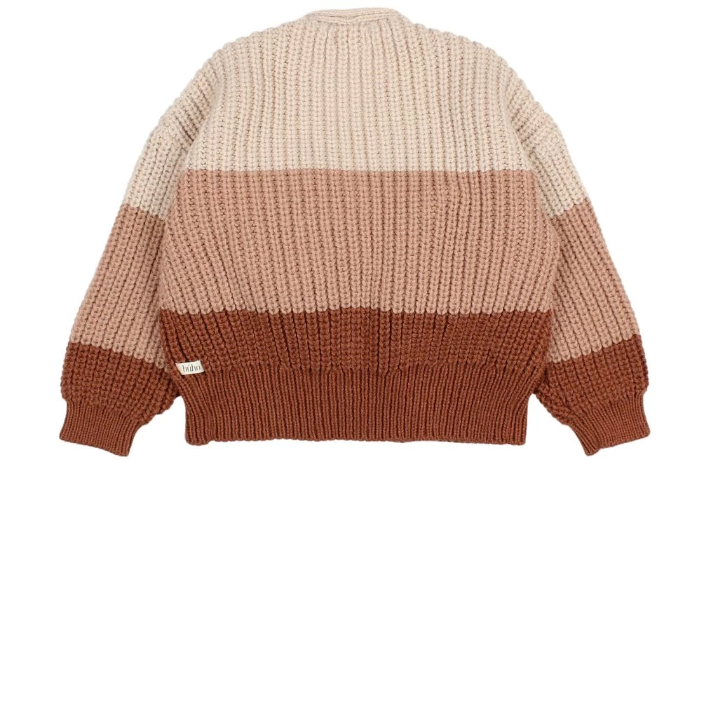 Enjoy the stylish design and soft knitted feel. Red, knitted jumper by búho. The jumper has a ribbed hem. It has a button closure at the front.
