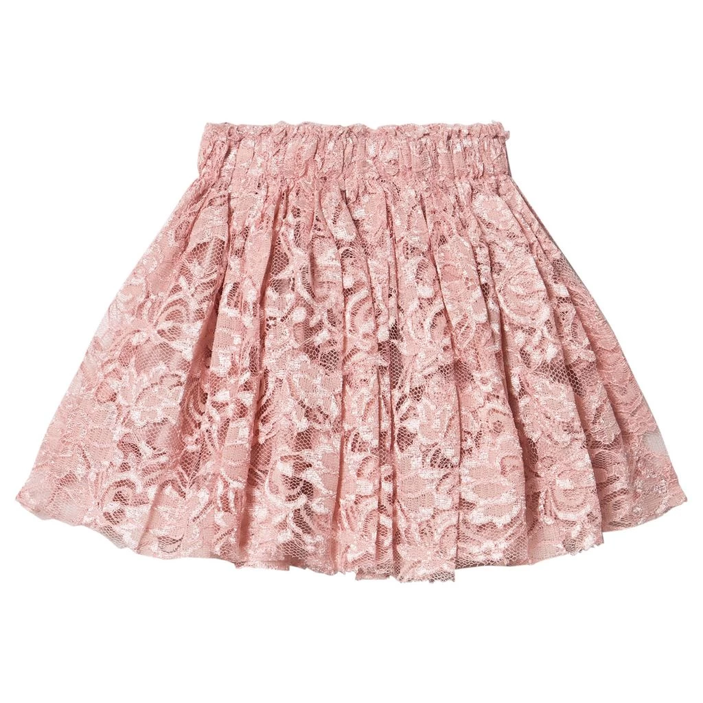Pink Lacy skirt by Dolly by Le Petit Tom. The skirt has a tulle overlay with flower embroidery. It has soft lining and an elasticated waist.