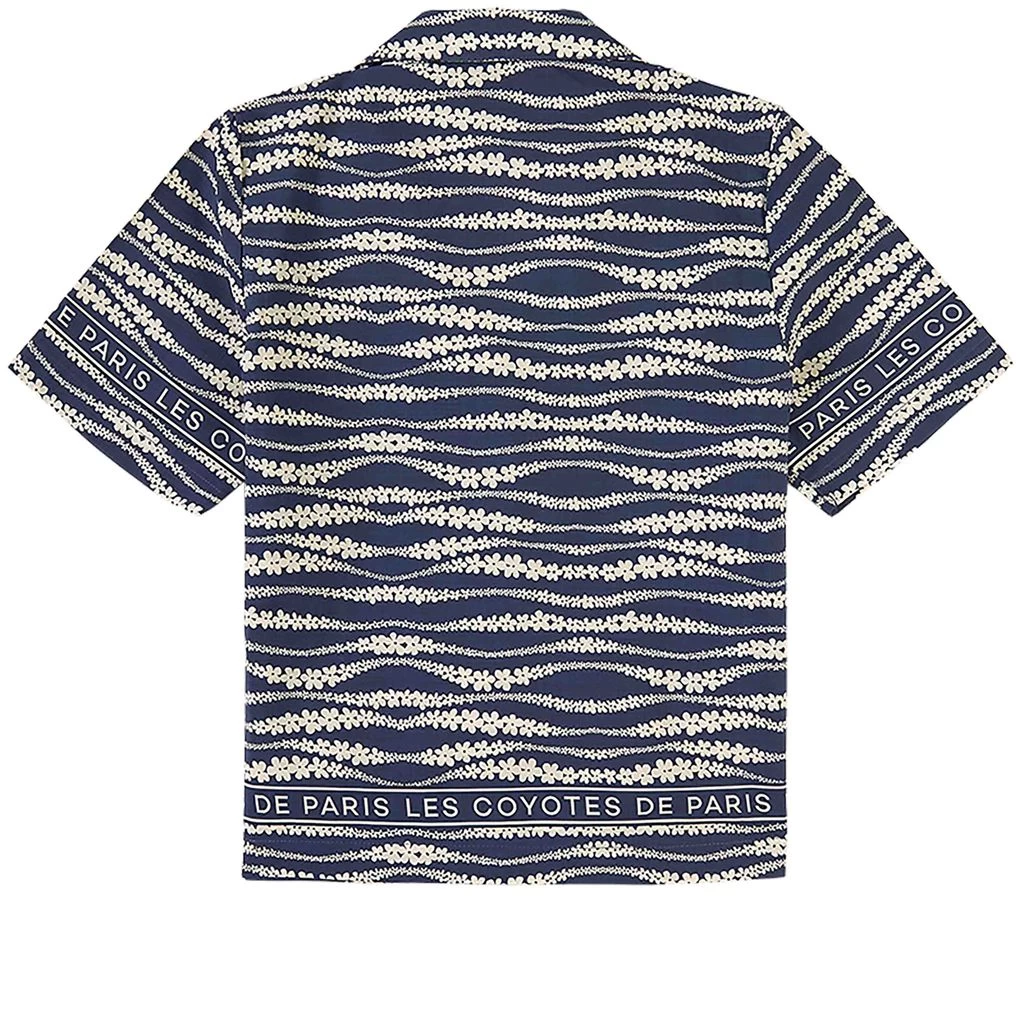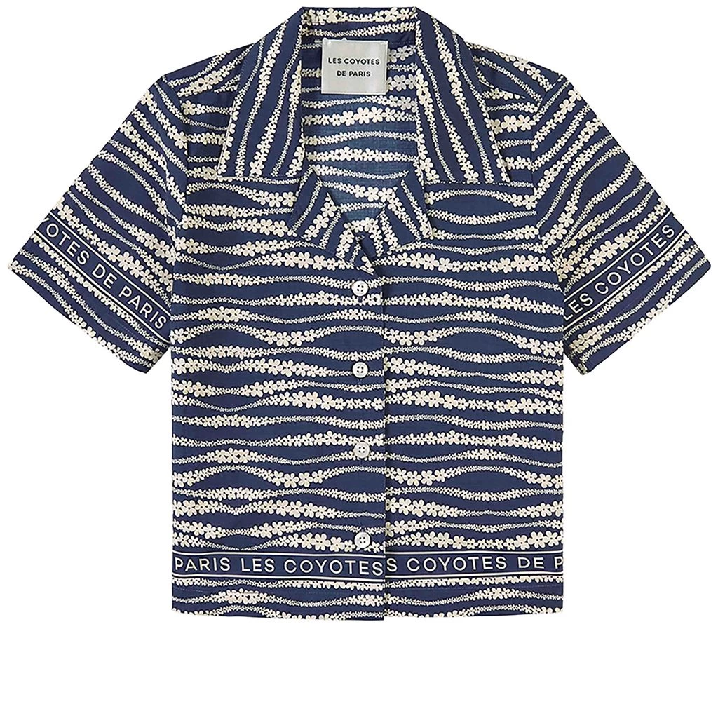 Blue Aiko Floral Waves Print blouse by Les Coyotes De Paris. The blouse has a button closure at the front. It has a branded all-over print.