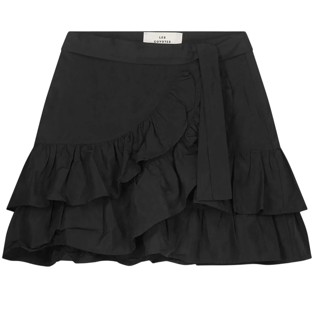 Look amazing in this fashionable skirt. Black Sai wrap skirt by Les Coyotes De Paris. The skirt has a ruffled design. It has taffeta fabric.