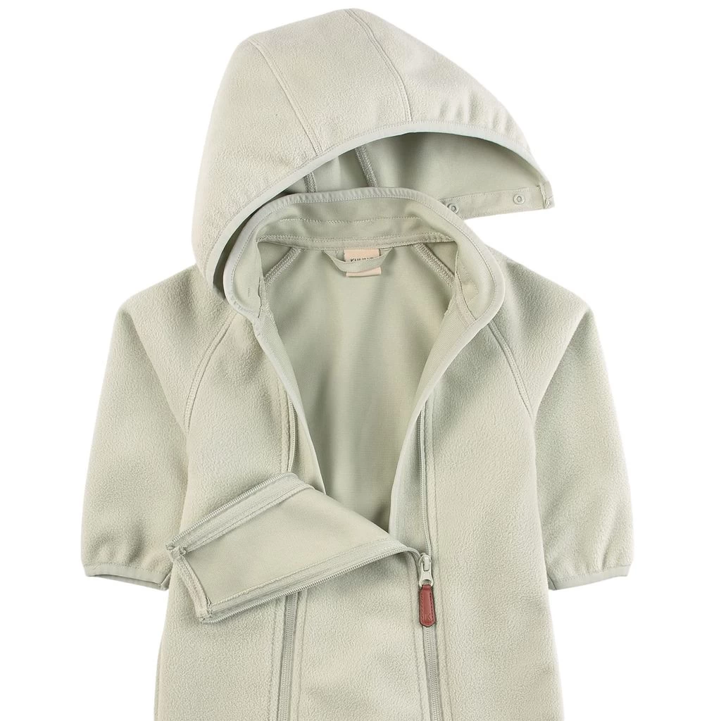 Pink Livigno Wind Fleece coverall by Kuling. The coverall has a detachable hood. It has a double zip closure at the front.