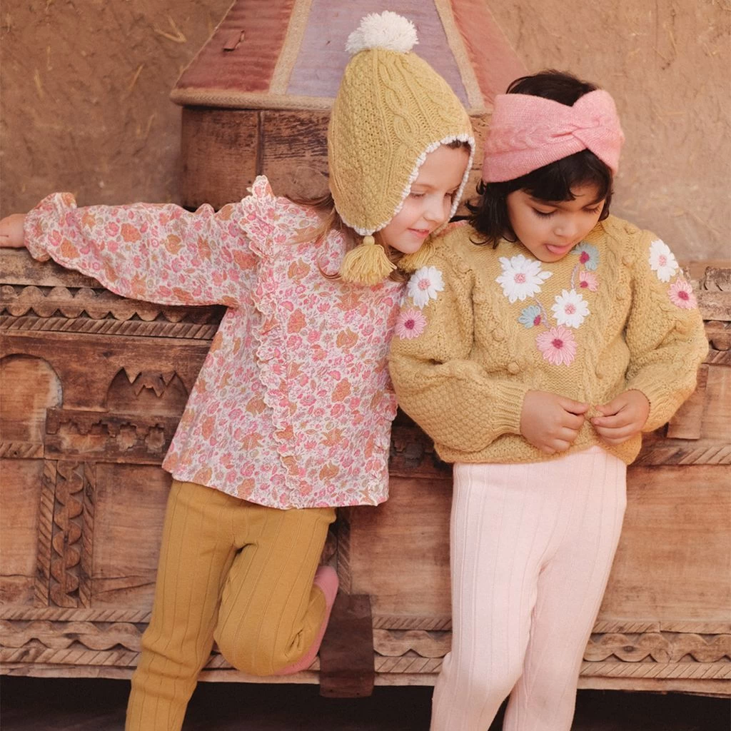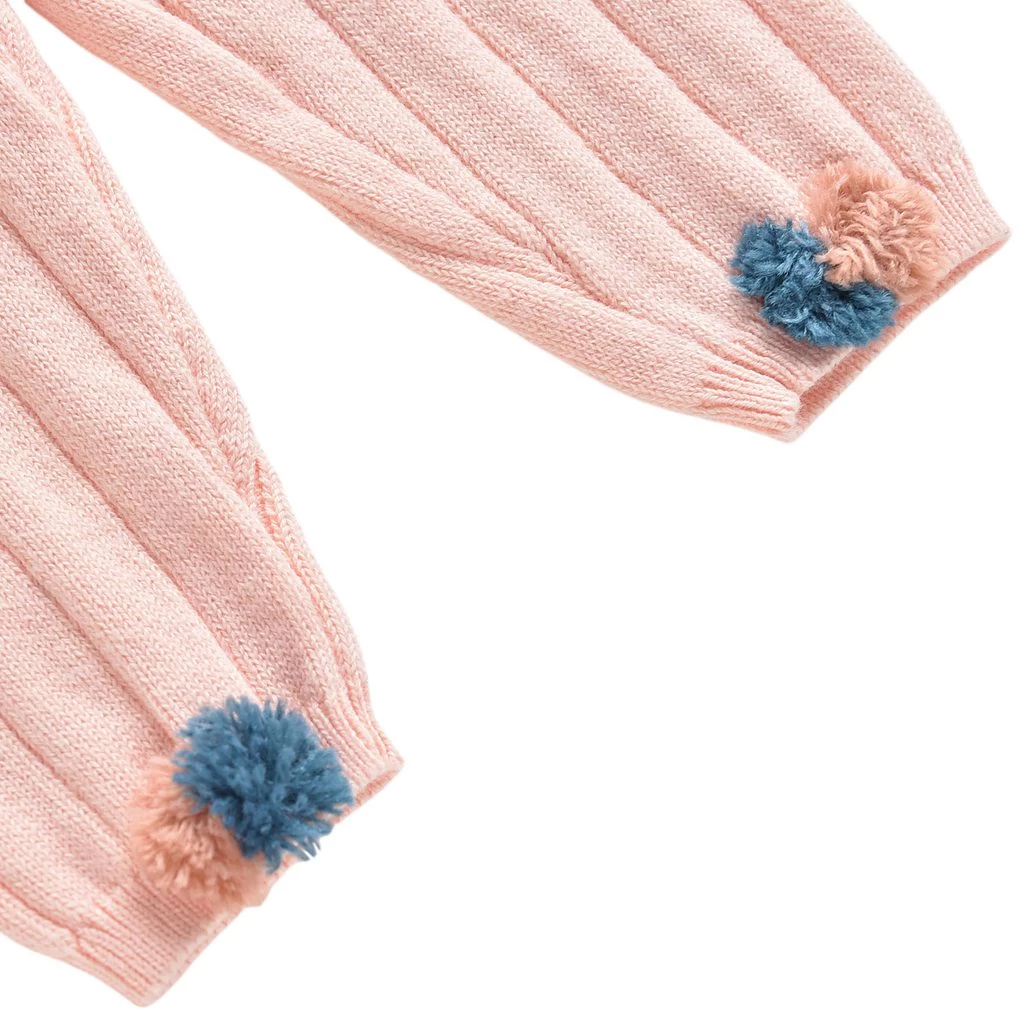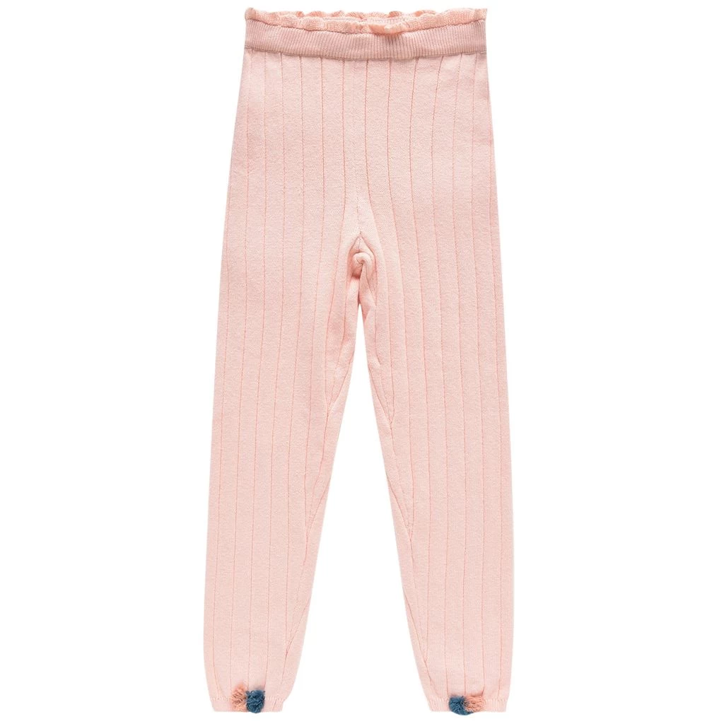 Look cute in these comfy leggings. Pink Moldavia leggings by Louise Misha. The leggings have a knitted design. They have an elasticated waist and pom-poms at the leg ends.