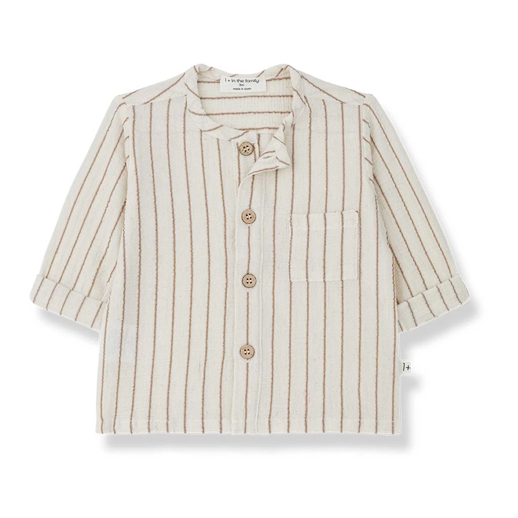 Stripes are so in right now. Wear this shirt with pride!. Beige Maurici shirt by 1+ In The Family. The shirt has a striped all-over print. It has a mandarin collar, a button closure at the front and a chest pocket.