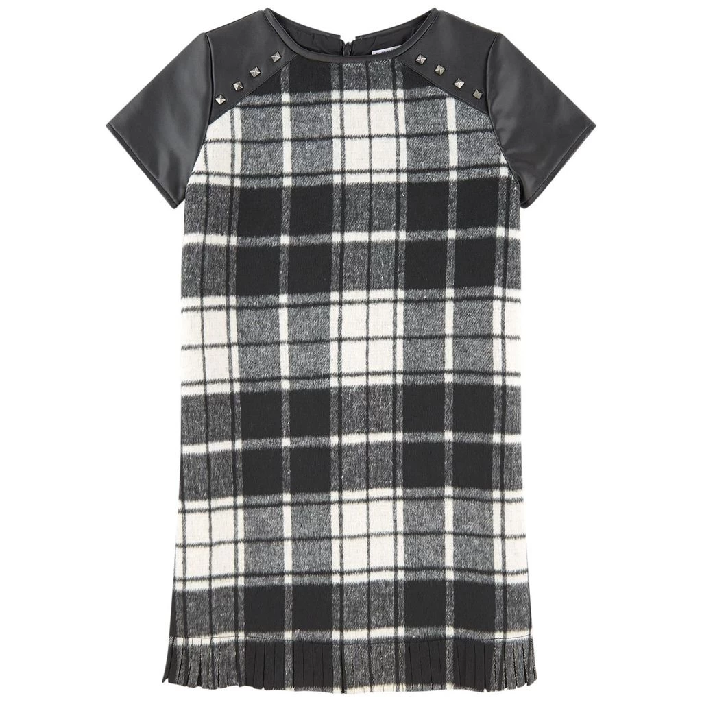 Clad them in the print of the season with this black dress from Mayoral. Adorned with an all-over tartan print, the loose-fitting design features faux leather sleeves and a secure zip closure to the back. Wear with tights and ankle boots for a fashion-forward look.