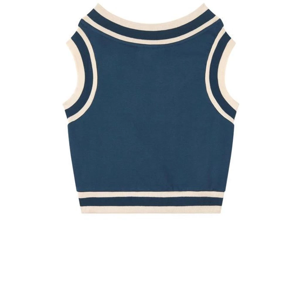 Navy Micke Old School Sport layering vest by Oii. The slipover has an embroidered logo at the front. It has a wide fit, a ribbed v-neck and a brushed fleece lining.
