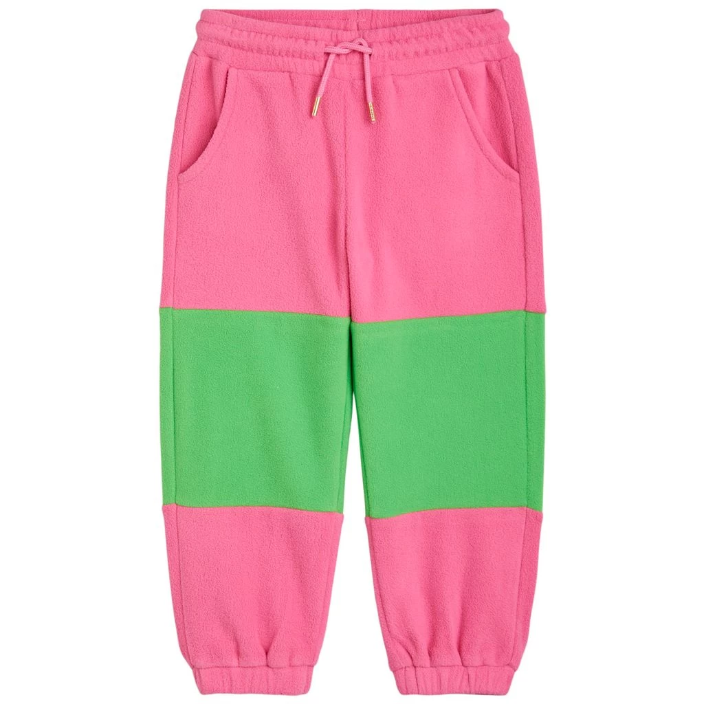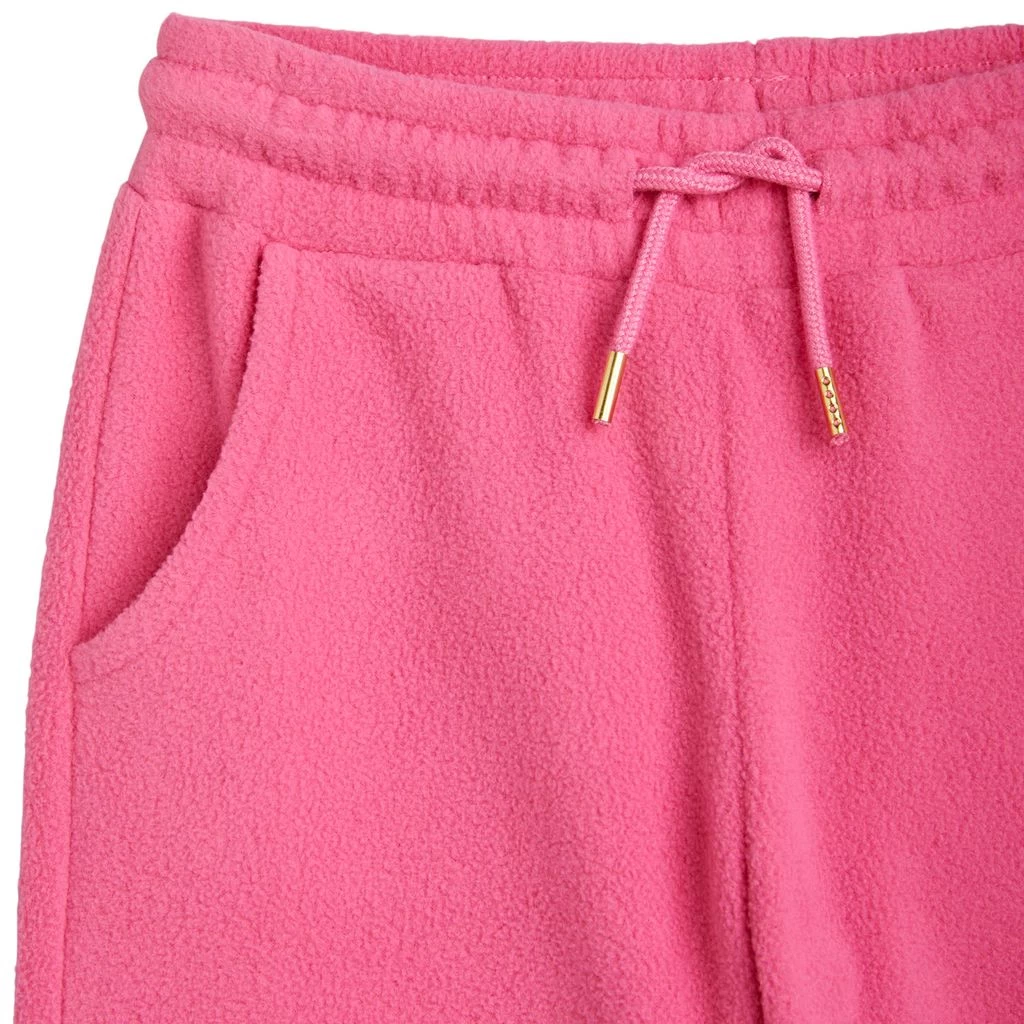 Pink fleece pant by Mini Rodini. The fleece pant has an elasticated drawstring waist.