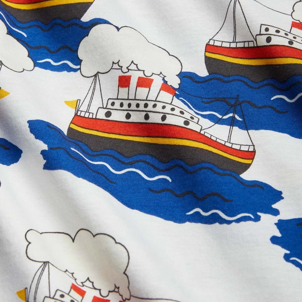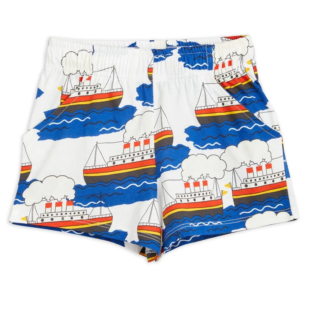 The perfect shorts for a sunny day with friends. White shorts by Mini Rodini. The shorts have a playful all-over print with ferry boats. They have an elasticated waist and two front pockets.