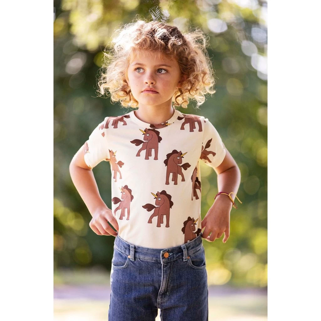 Add a magical touch to their playdate uniform with this off-white tee from Swedish fashion brand, Mini Rodini. Made from a soft cotton adorned with an all-over cartoon unicorn print, it’s finished with a round neck and would look sweet teamed with skinny jeans and sandals.