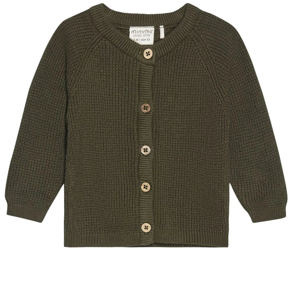 Knitwear is always the right choice. Green cardigan by Minymo. The cardigan has a knitted design. It has a button closure at the front and rib-knit cuffs.