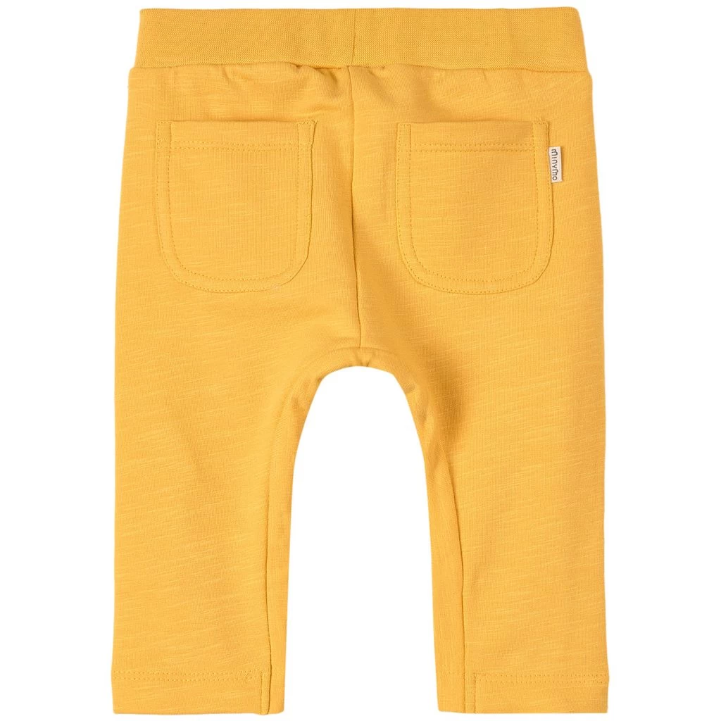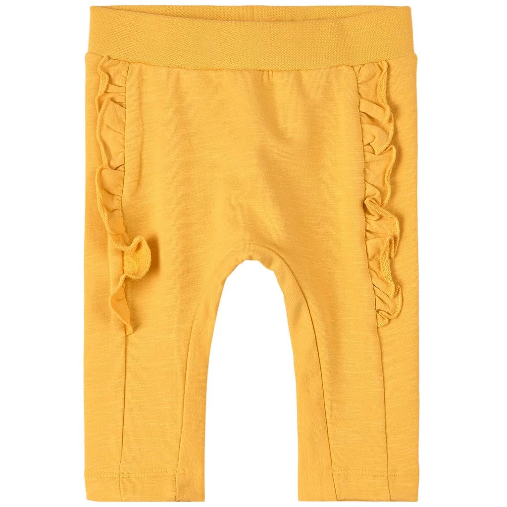 Yellow Ruffle pants by Minymo. The pants have an elasticated waist. They have ruffle details.