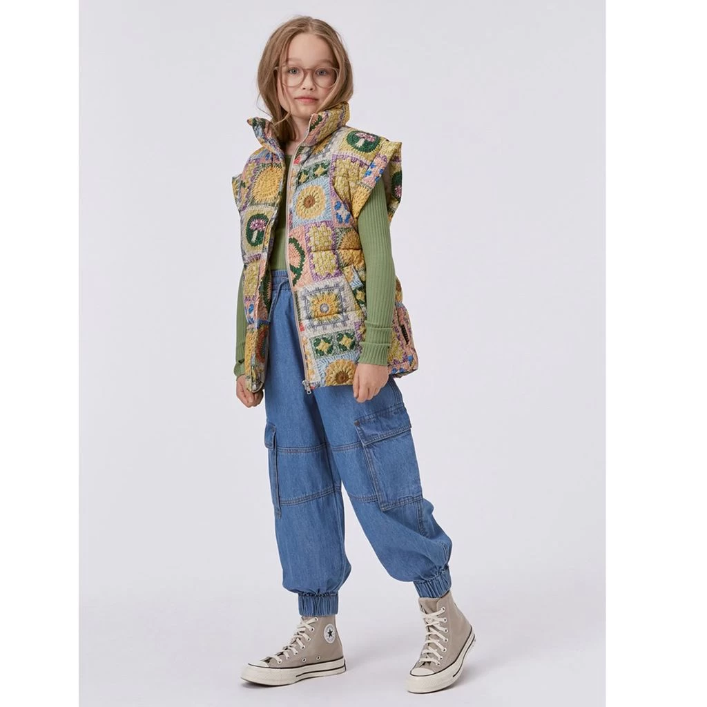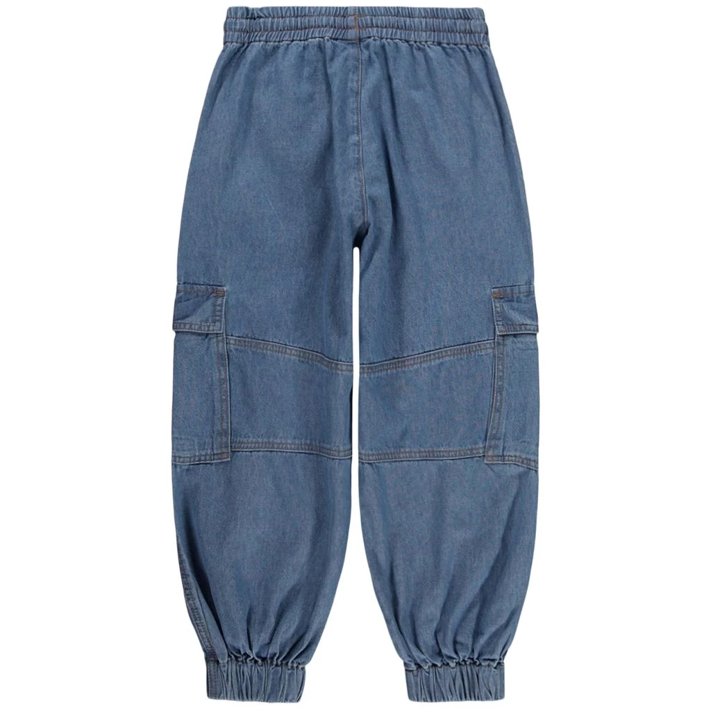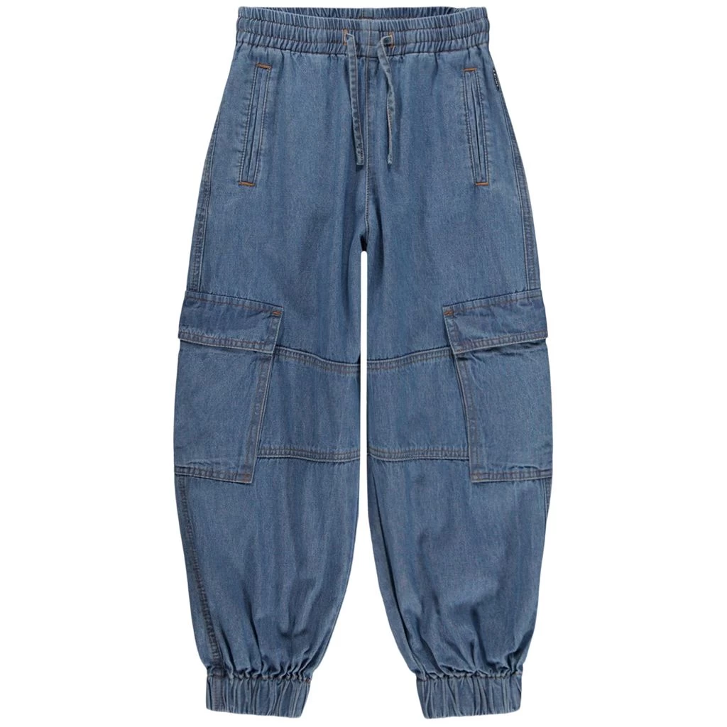 Classic but trendy pants that work great with your favorite outfit. Blue Aliki trousers by Molo. The trousers have an elasticated drawstring waist. They have two front pockets, two pockets on the legs and elasticated cuffs.