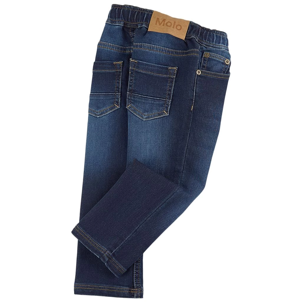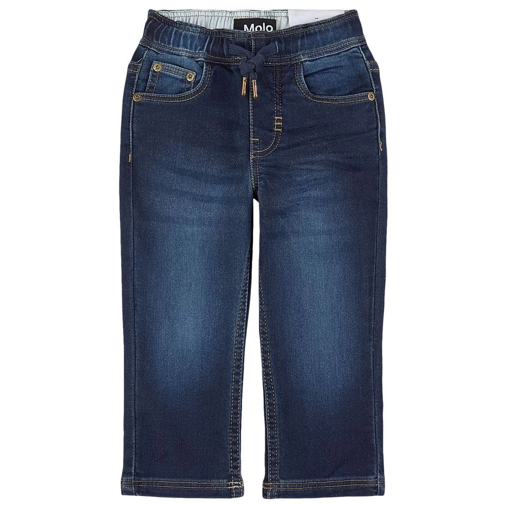 The perfect jeans for any occasion. Navy Augustino jeans by Molo. The jeans have a regular fit. They have a 5-pocket design, an elasticated elasticated waist with a drawstring and a faux fly.