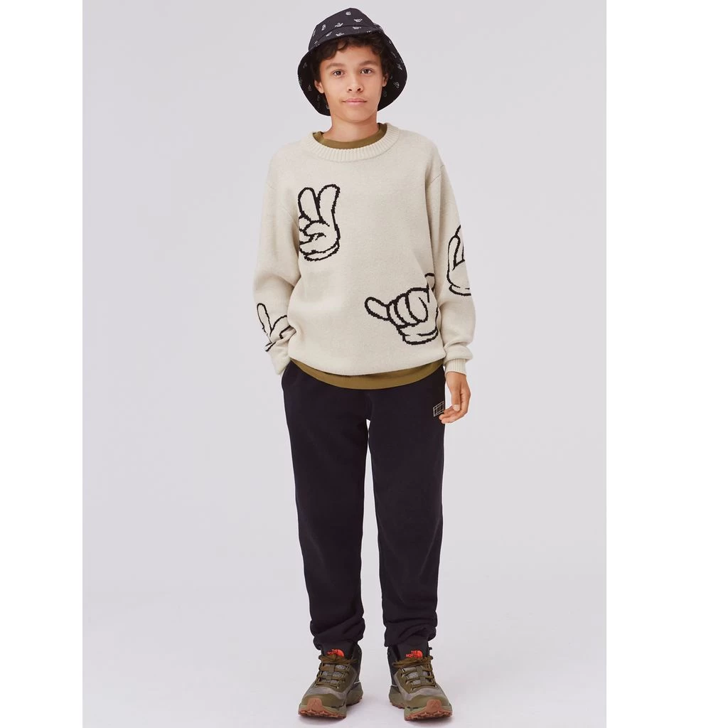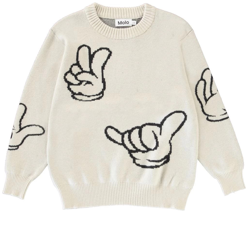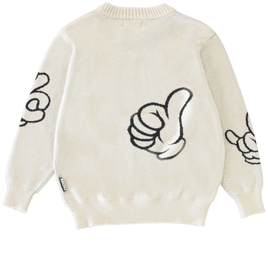 White Bello sweater by Molo. The sweater has a rounded neck.
