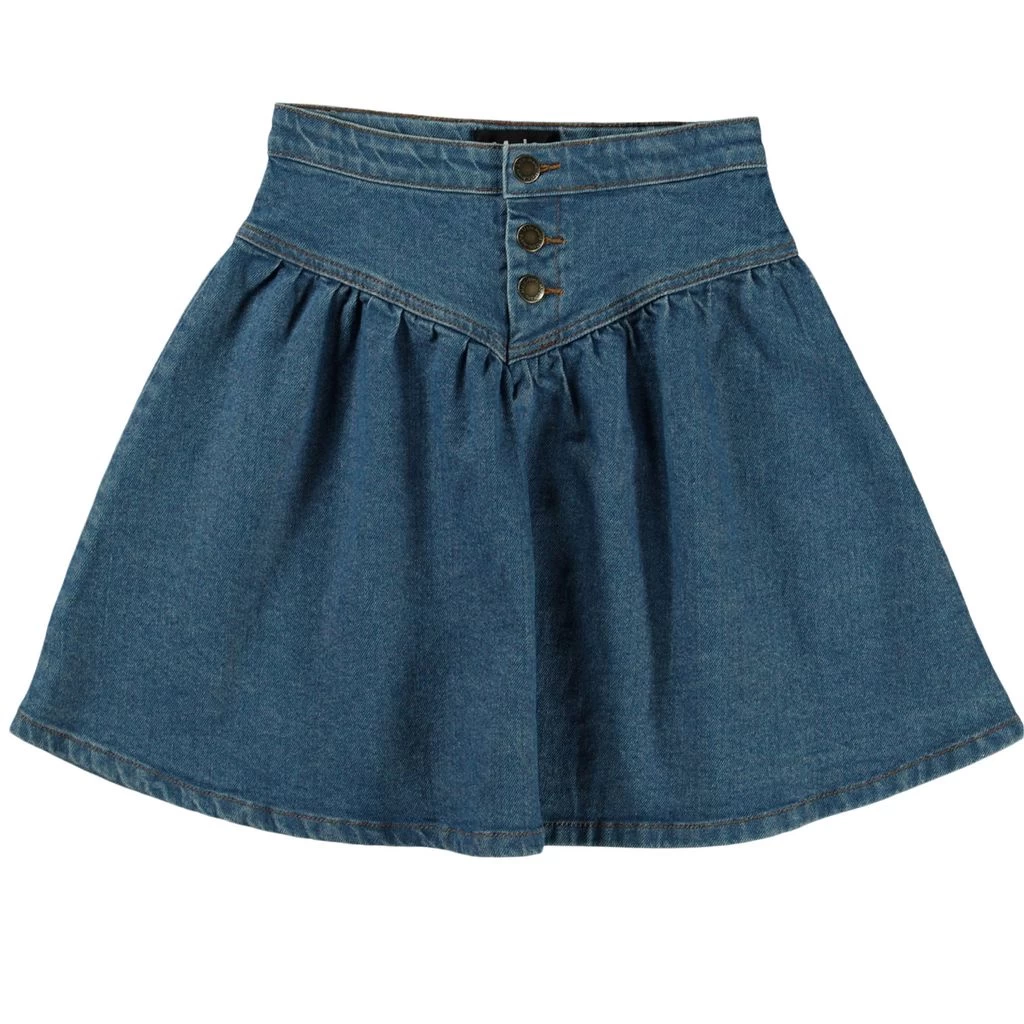 A denim skirt that’s perfect for any day. Blue Betsy denim skirt by Molo. The skirt has a button closure at the front. It has a logo at the back and a regular fit.