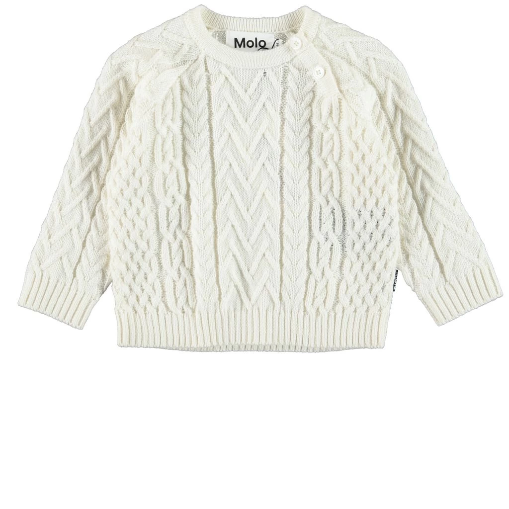 Knitwear is always the right choice. White Bjork knit sweater by Molo. The sweater has a regular fit. It has a knitted design and rib-knit cuffs.