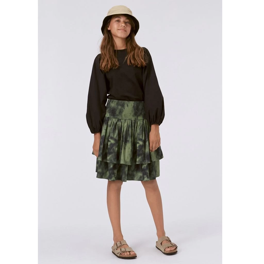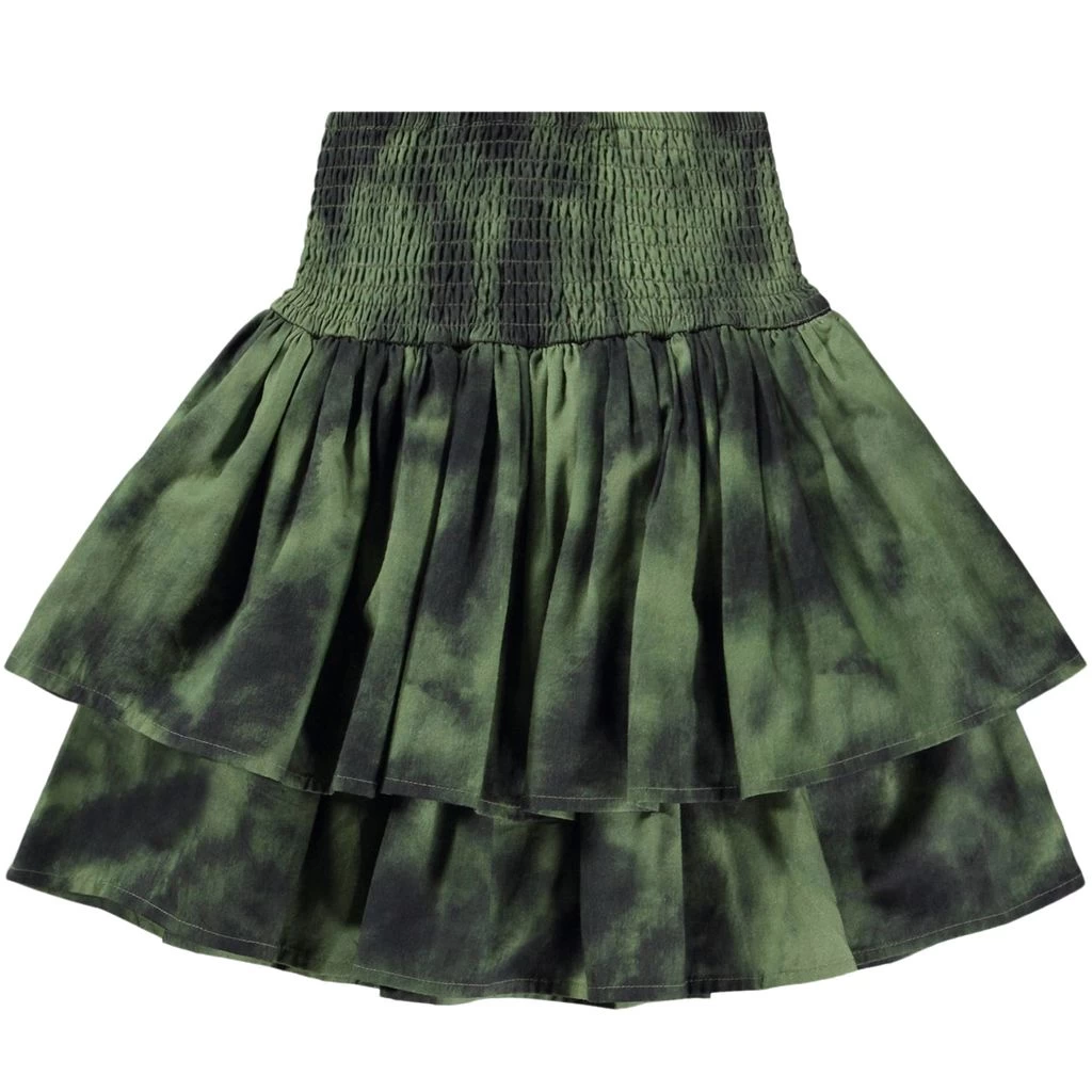 The perfect skirt for everyday. Green Brigitt skirt by Molo. The skirt has a tie-dye effect. It has an elasticated waist.