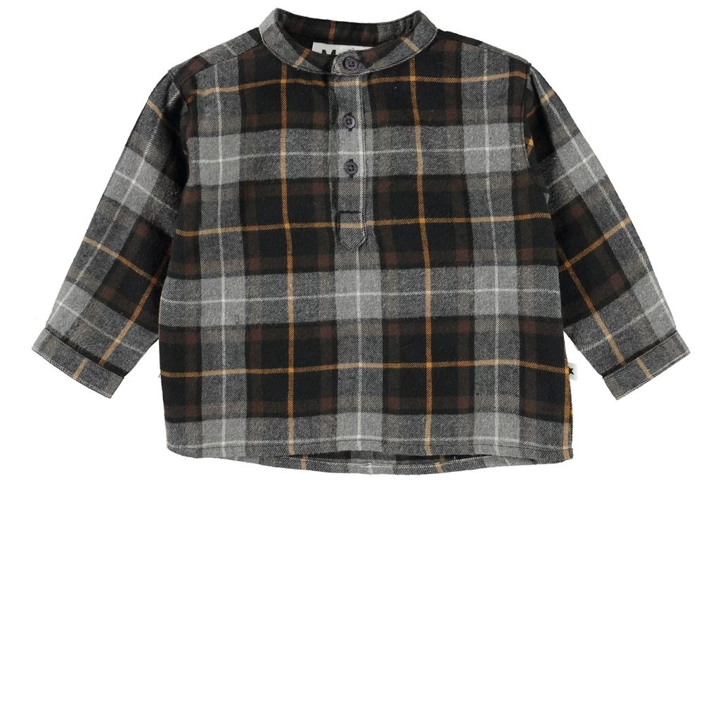 A shirt that makes any day at least a little better. Brown Enoz shirt by Molo. The shirt has a regular fit. It has a mandarin collar and a button closure at the front.