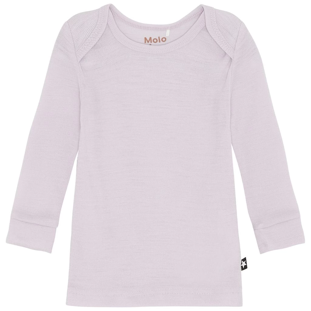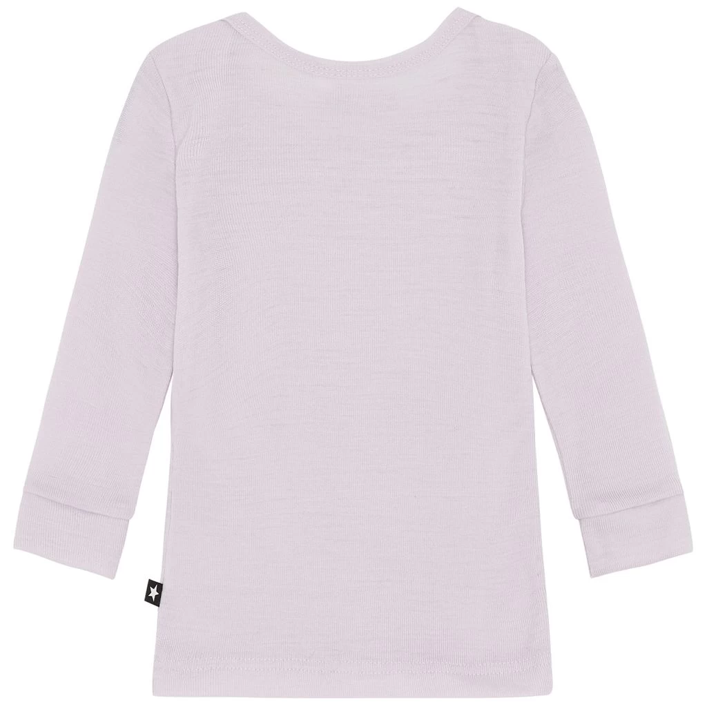 Wool brings you warmth and comfort. Eli wool t-shirt by Molo. The wool t-shirt has an envelope folded neckline. It has banded cuffs.