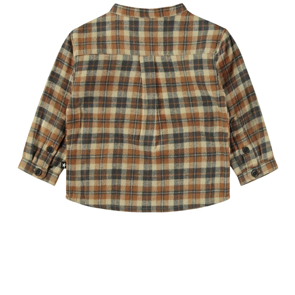 A shirt to make your day. Brown Enoz shirt by Molo. The shirt has a checked all-over print. It has a regular fit, a mandarin collar and a button closure at the front.
